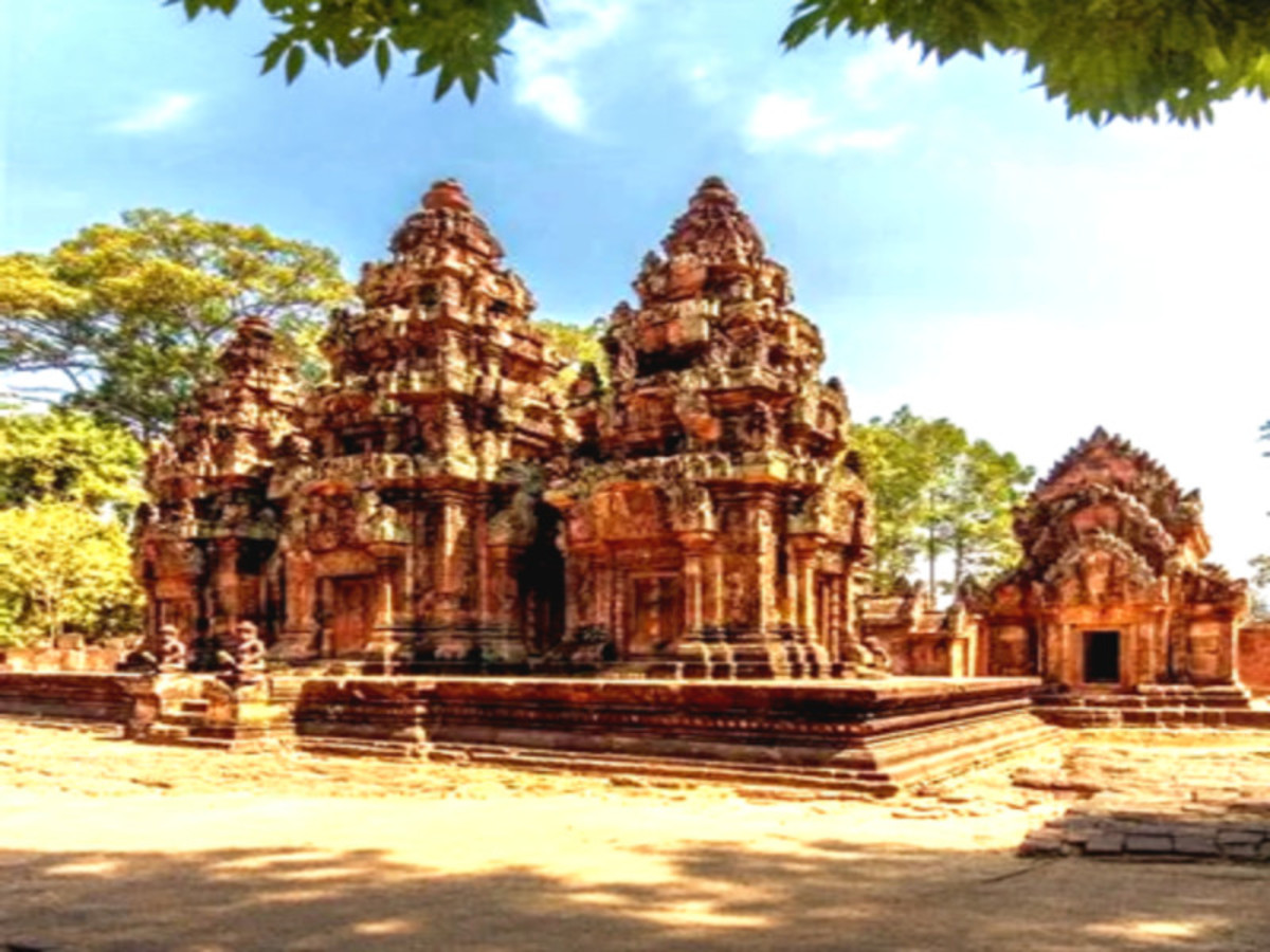 Petit-déjeuner à l'hôtel. Le matin, traversée de la campagne en véhicule sur une route bordée de maisons traditionnelles et de cocotiers pour atteindre le temple de Banteay Samre, citadelle de l'ethnie des Samrès. Il a été construit par les Hindouistes à la même période que le temple d'Angkor Wat. Vous poursuivez par la visite du temple de Banteay Srei, la "citadelle des femmes », réputé être l'un des joyaux de l'art khmer du Xème siècle pour ses décors finement sculptés dans le grès rose. Arrêt en cours de route pour découvrir la réalisation du sucre de palme collecté à partir des Thnot, l'emblématique palmier à sucre qui borde les rizières cambodgiennes. Déjeuner dans une maison traditionnelle en bois. L'après-midi, découverte du célèbre temple d'Angkor Wat, le monument le plus prestigieux du Cambodge, dont les dimensions sont comparables à la cité interdite de Pékin. Il reproduit dans le monde des hommes la symbolique du mont Meru, siège du séjour céleste des divinités. Dîner libre. Nuit à l'hôtel.