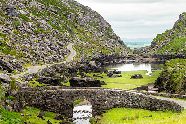 Excursion d'une journée complète sur le célèbre Anneau du Kerry. C'est l'un des itinéraires touristiques les plus pittoresques d'Irlande. Long de 177 km, il fait le tour de l'impressionnante péninsule d'Iveragh. Vous aurez l'impression de pénétrer dans un espace naturel mystique, et ce sera effectivement le cas, en passant entre des montagnes aux contours doux, à travers des clairières, autour de tourbières, de rivières, de lacs et de plages immaculées. La route qui traverse les magnifiques montagnes des MacGillycuddy Reeks révèle des cols et des vallées secrets disséminés le long des côtes légendaires des baies de Dingle et de Kenmare. Nuit dans la région de Killarney, dans le comté de Kerry.
