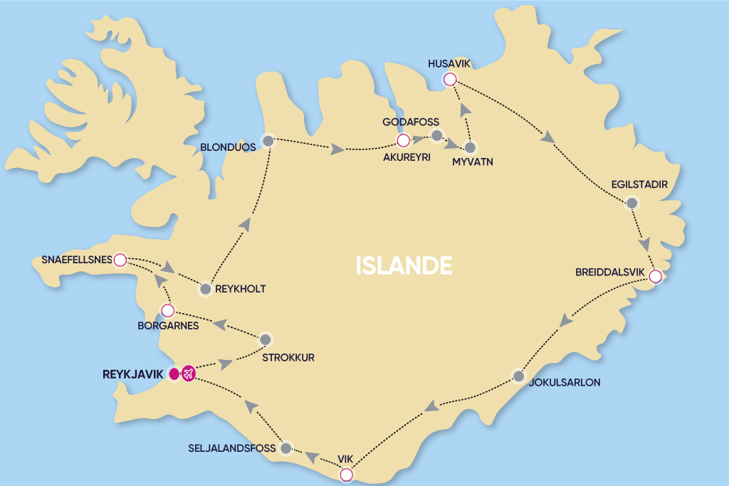 Votre itinéraire en Islande 10 jours et 9 nuits :