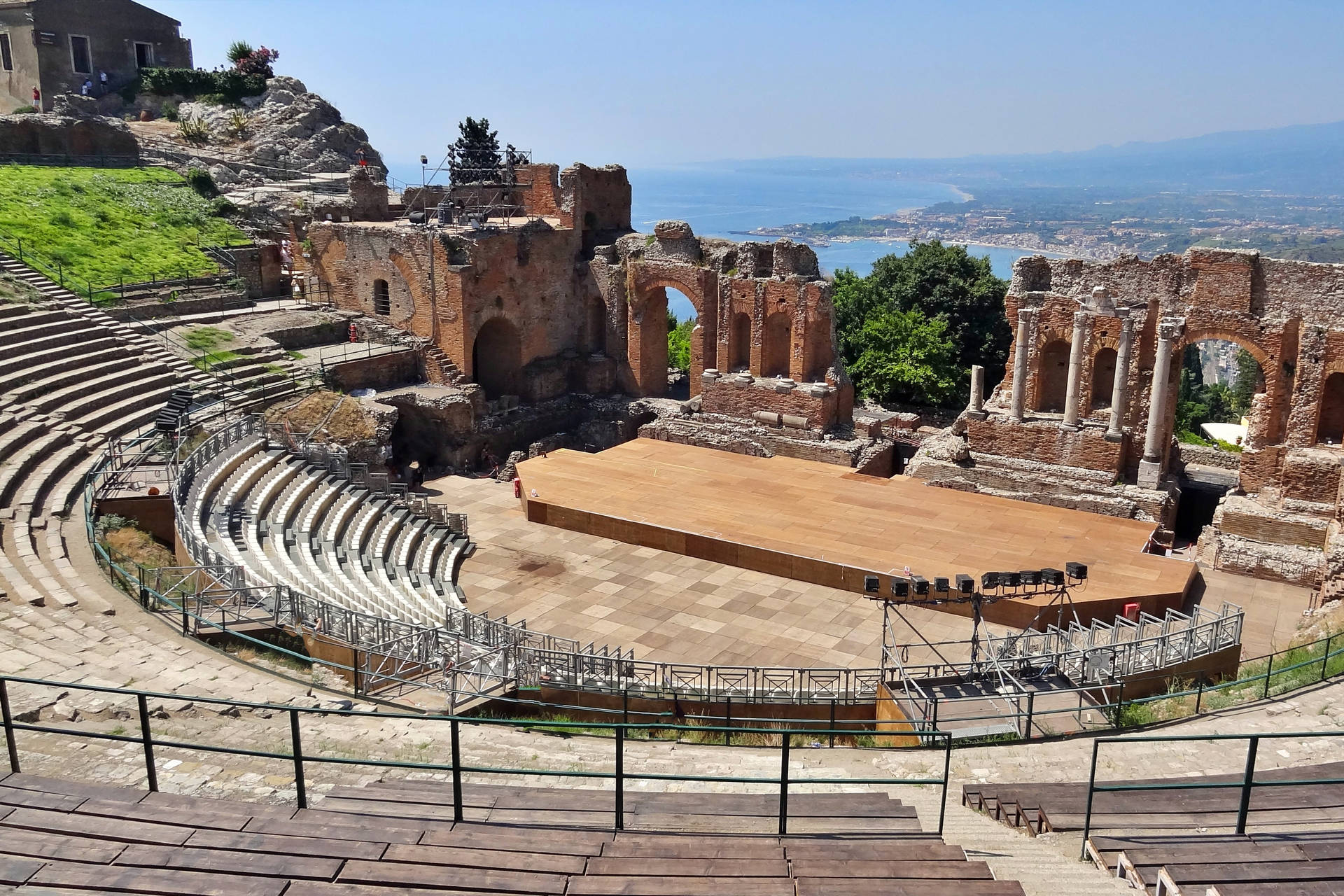 Départ pour l'Etna, le plus haut volcan actif d'Europe. Profitez d'un trajet panoramique en gravissant les flancs du volcan classé au patrimoine mondial de l'UNESCO jusqu'à 1900 m et terminez éventuellement la montée en funiculaire ou en jeep (à réserver sur place, en supplément) jusqu'aux cratères fumants du sommet. Continuez votre journée direction Taormine, la destination la plus populaire de la Sicile, réputée pour sa beauté naturelle intacte et son incroyable Théâtre antique qui surplombe le golfe de Naxos. Dîner libre et nuit.