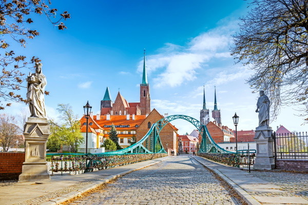Petit-déjeuner. Départ pour Wroclaw : visite de Lódz, le plus grand centre d'industrie textile en Pologne dont l'architecture en fait une ville aux murs rouges, et centre cinématographique où la plupart des grands metteurs en scène polonais ont débuté (Polanski, Wajda, Kieslowski...). De célèbres familles ont bâti d'énormes fortunes à Lodz et y ont laissé un patrimoine architectural et urbain qui figure aujourd'hui au patrimoine culturel national. Visite de Wroclaw, la plus importante ville en Basse-Silésie. Malgré son histoire violente et des destructions qui l'ont touchée pendant la Seconde Guerre Mondiale, la ville a gardé son importance et la plupart des bâtiments historiques. La ville est construite sur une multitude d'îles et compte plus de 100 ponts et passerelles qui lui valent le nom de « petite Venise ». Promenade sur les îles de l'Oder où se dressent de nombreuses églises gothiques de brique rouge, dont la cathédrale St-Jean. Installation à l'hôtel. Nuit à Wroclaw.