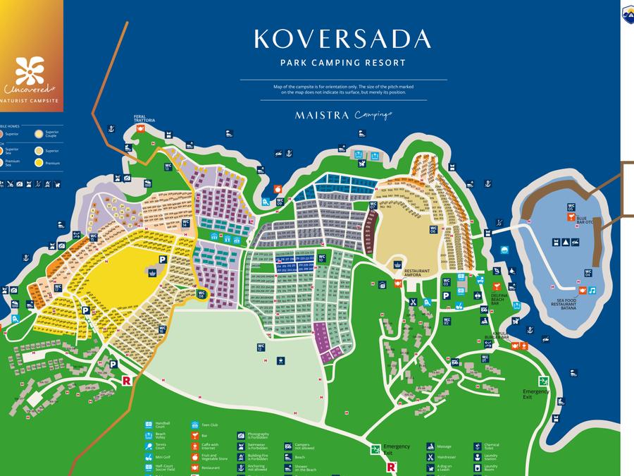 Les atouts de l'Établissement- Point fort 1 : Cadre naturel préservé et plage privée : Le camping est situé dans un environnement naturel idyllique, avec un accès direct à une plage privée, offrant ainsi un lieu de détente idéal au bord de la mer Adriatique. L'isolement de la péninsule garantit calme et sérénité pour un séjour naturiste en toute tranquillité.