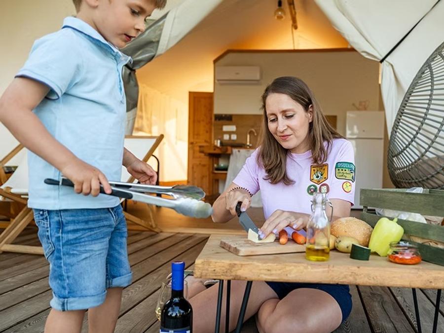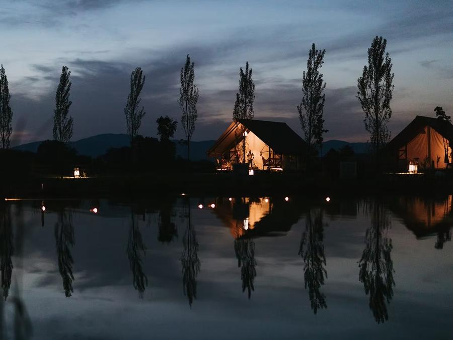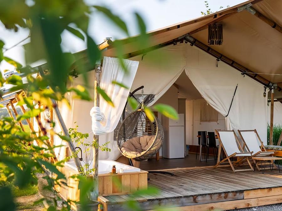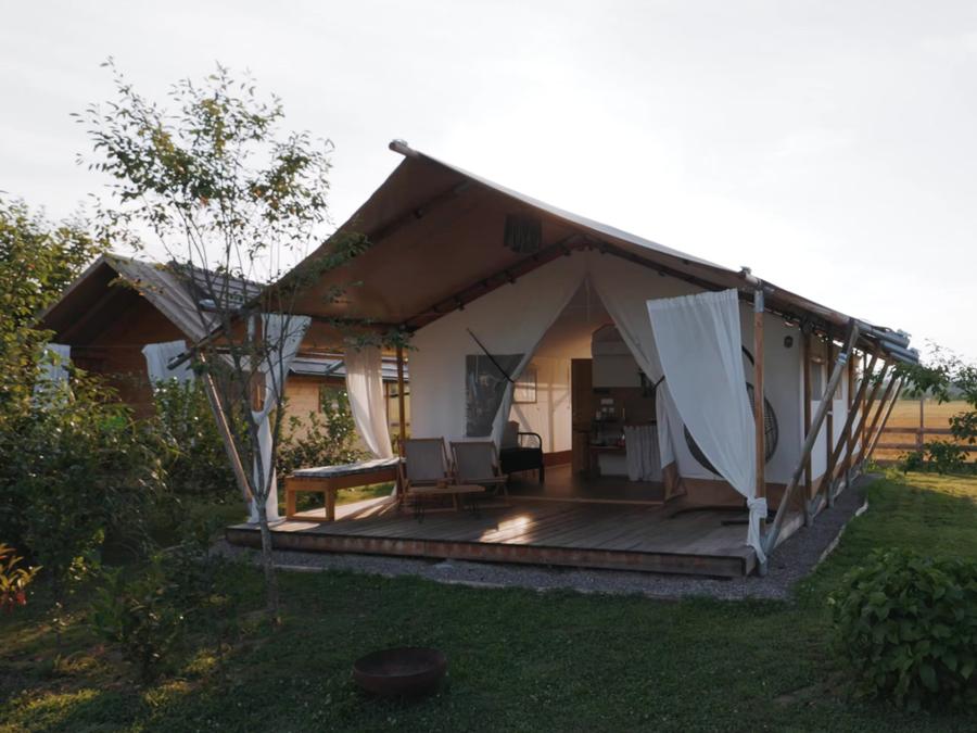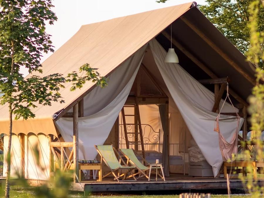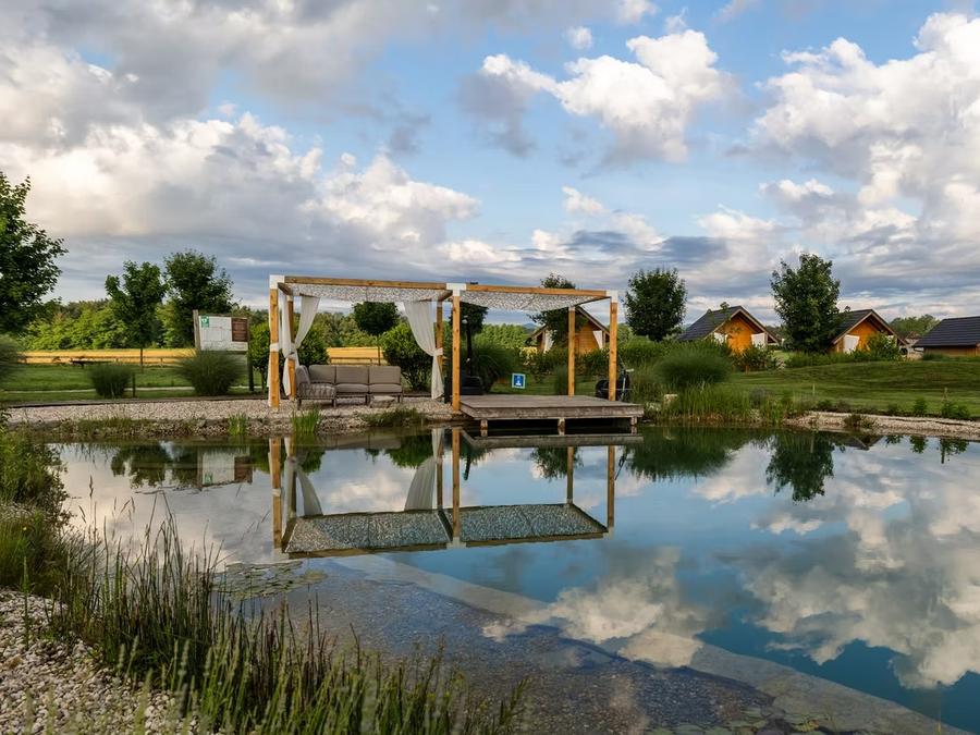 Le Glamping Kolpa Resort, situé à Gradac dans la région de Bela Krajina au sud-est de la Slovénie, propose une piscine naturelle de 200 m² parfaitement intégrée au paysage, à quelques minutes de la frontière croate et à 800 mètres de la rivière Kolpa, réputée pour la baignade.L'établissement privilégie les activités de plein air et le bien-être : badminton, jeux de société, aire de jeux extérieure pour enfants, ainsi que de nombreuses possibilités de canoë, paddle, randonnées et cyclisme à proximité. Les familles profitent d'un environnement sécurisé au coeur de la nature, sans club enfants ni animations organisées, et un court de tennis se trouve à environ 3 km.Le resort offre des services de qualité : Wi-Fi gratuit, parking privé, bar avec terrasse, petit-déjeuner continental à base de produits locaux, hébergements climatisés et blanchisserie collective. Un espace barbecue et la location de vélos sur place facilitent l'organisation de votre séjour. Les attractions locales comme le château de Dubovac ou le musée de Karlovac sont aisément accessibles.