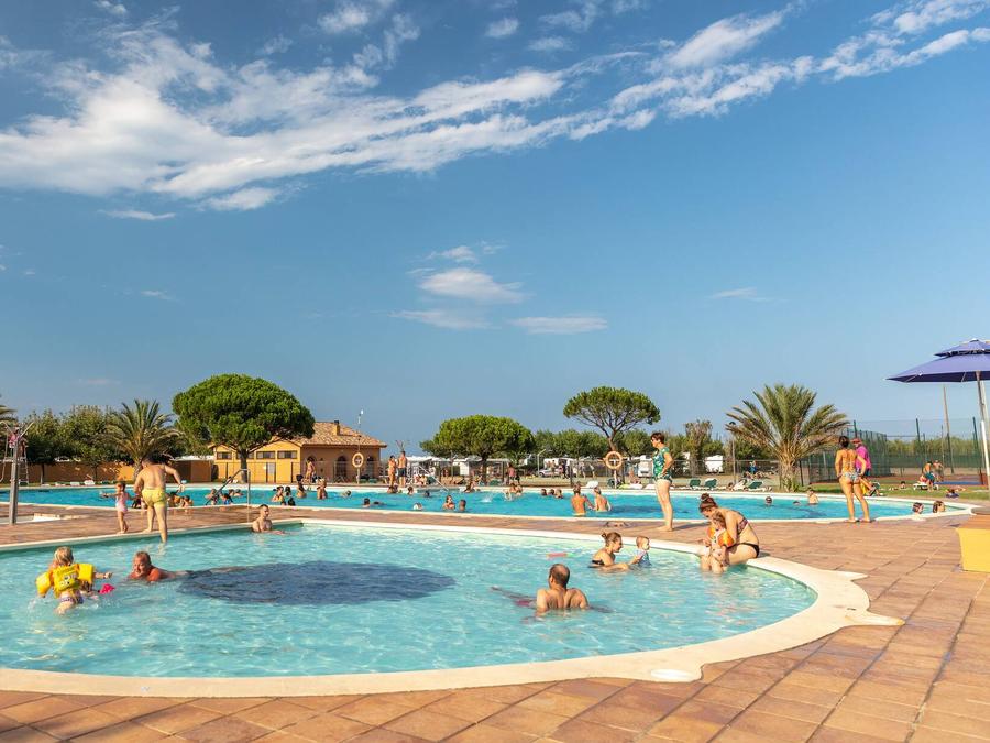 Piscines- Piscine extérieure - Description : Piscine pour les plus petits, entourée d'un grand espace gazonné avec des chaises longues. - Dates d'ouverture : Ouvert du 16 mai au 13 septembre - Horaires d'ouvertures : De 10:00 à 20:00 - Chauffage de la piscine : Non chauffée - Prix : Gratuit