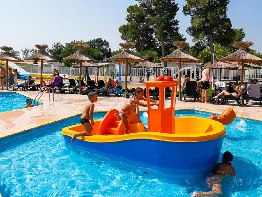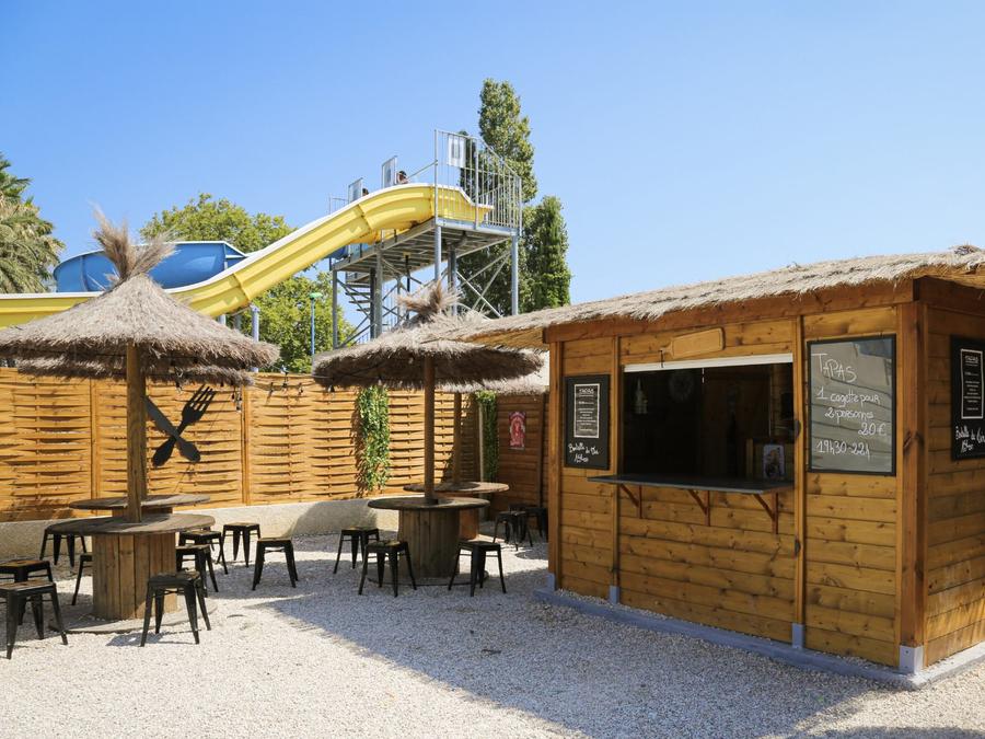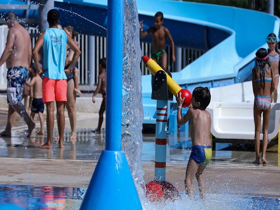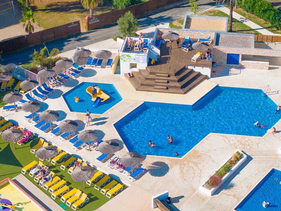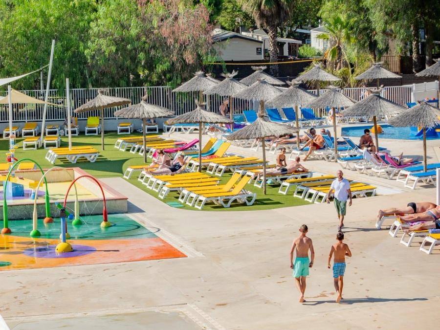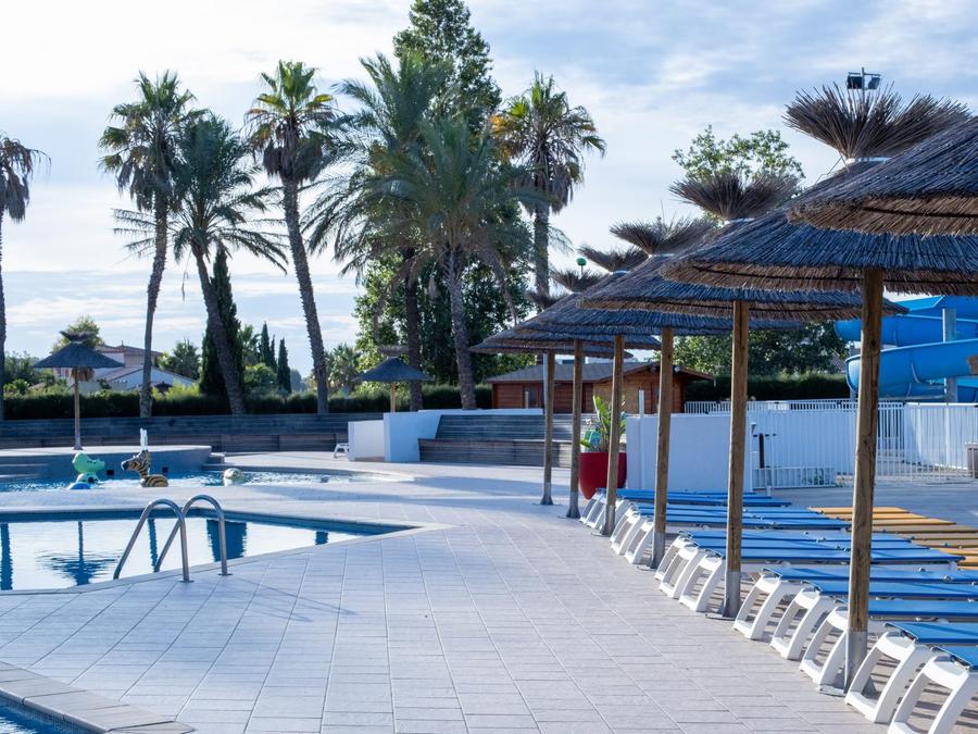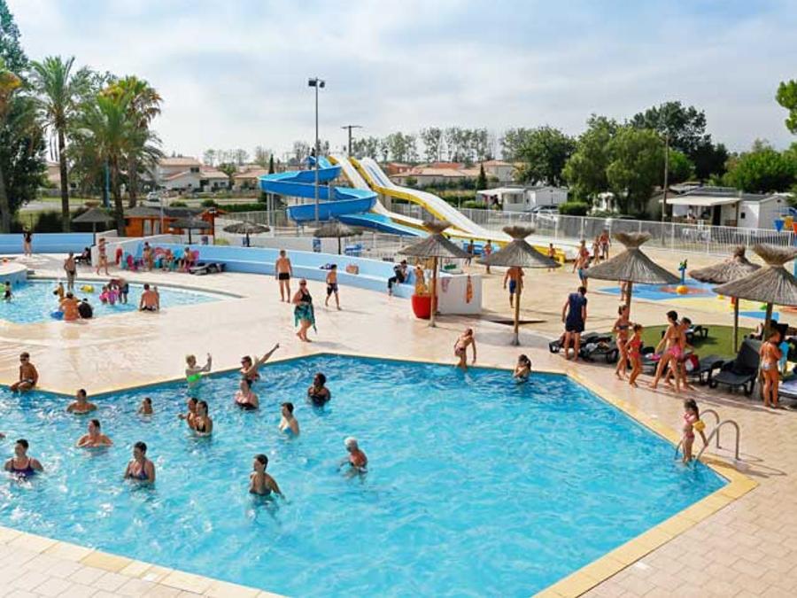 Piscines- Piscine extérieure - Description : Grand solarium avec de nombreux transats installés sous les parasols ! - Baignade surveillée : Baignade surveillée - Dates d'ouverture : Ouvert du 5 octobre au 11 octobre - Chauffage de la piscine : Chauffée - Toboggans : 4 toboggans - Pataugeoire : Avec pataugeoire - Prix : Gratuit