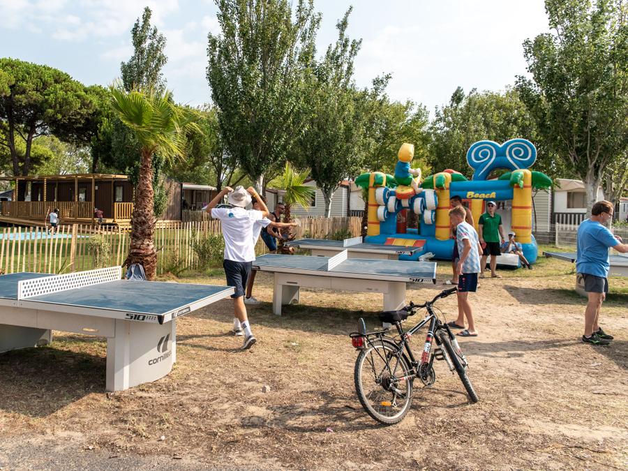 À seulement 500 mètres de la mer, ce camping familial propose un accès direct à une vaste plage de sable, le tout dans un environnement naturel propice à la détente. Sur place, une piscine extérieure chauffée vous attend durant toute la saison, agrémentée de nouveaux toboggans prévus pour 2026 (deux pentaglisses et un toboggan tube). Les plus jeunes profiteront d'une pataugeoire ludique et d'un espace aquatique doté de jeux variés, incluant plusieurs toboggans, jets d'eau et décors amusants.En haute saison, un mini-club accueille les enfants pour des activités créatives et des jeux, pendant que des tournois sportifs et des soirées thématiques rythment la vie du camping. L'équipe d'animation veille à proposer un programme divertissant adapté à toute la famille.Côté commodités, vous trouverez un snack-bar proposant plats et pizzas à emporter ou à savourer en terrasse, ainsi qu'une épicerie avec dépôt de pain et viennoiseries pour agrémenter votre séjour. L'ambiance conviviale et la proximité de la plage font de ce site un lieu privilégié pour des vacances réussies.