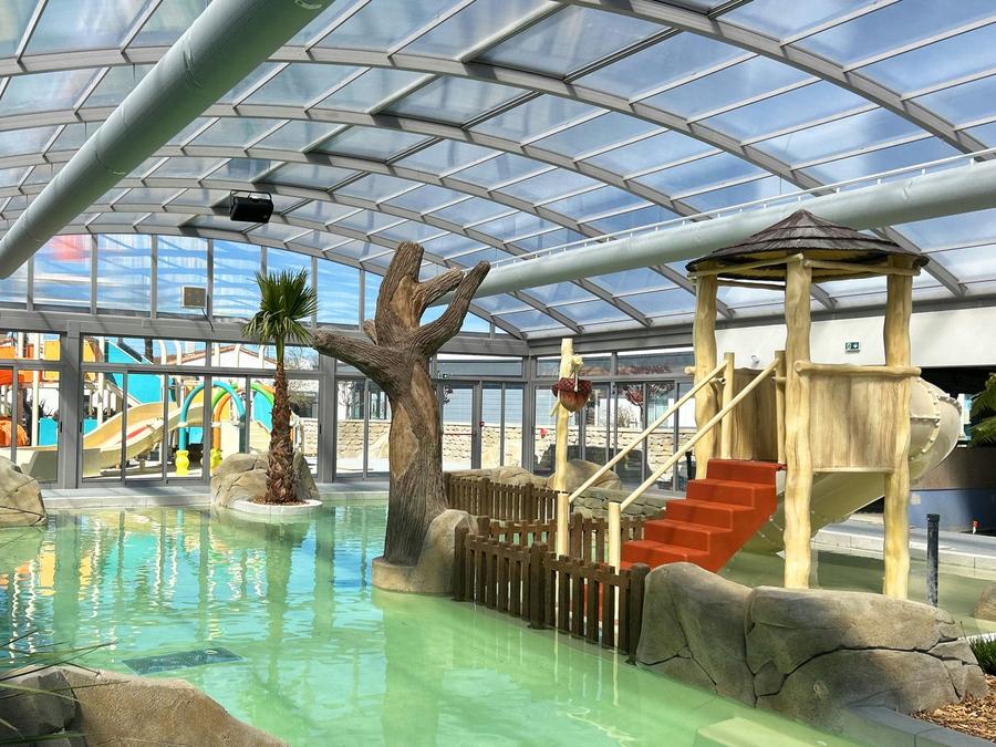 À proximité des Sables d'Olonne, à seulement 5 km du littoral, le Club le Trianon 5* propose un espace aquatique exceptionnel, idéal pour petits et grands. Vous pourrez profiter d'une vaste piscine couverte chauffée de 200 m² avec une pataugeoire ludique de 120 m², ainsi qu'une piscine extérieure de 1000 m² et des toboggans sensationnels, dont un Wave pour les amateurs d'adrénaline.Pendant les vacances de printemps et d'été, des animations variées sont organisées du lundi au vendredi. Les enfants et adolescents bénéficient de clubs adaptés à leur tranche d'âge, proposant des activités récréatives et sportives, tandis que des soirées à thème réunissent toute la famille plusieurs fois par semaine. Les installations comprennent également une salle de fitness, un court de tennis, un mini-golf et un service de location de vélos.Le village club met à disposition tous les commerces nécessaires : épicerie, bar avec terrasse, snack et, en haute saison, une navette gratuite relie le camping à la plage sauvage de Sauveterre.