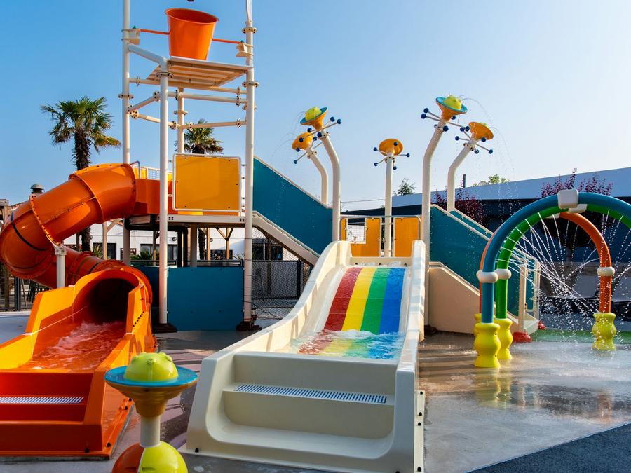 Piscines- Piscine extérieure - Description : Piscines extérieures & toboggans - Ouvertes et chauffées* toute la saison > 1 toboggan à bouées « Wave » > 1 toboggan à boucle > 1 toboggan à sensation « Space Hole » > 4 toboggans pentaglisses > Bassin avec rivière de marche et massante > Pataugeoire avec jeux ludiques : mini toboggan, seaux... > Banquettes anatomiques, cascade, plages de transats Jardin d'eau extérieur - Ouvert et chauffé* toute la saison > 2 mini-toboggans > Arcs-en-ciel de jets d'eau > Seau d'eau à bascule & Jeux ludiques - Baignade surveillée : Baignade non surveillée - Dates d'ouverture : Ouvert toute la saison - Chauffage de la piscine : Chauffée - Toboggans : 7 toboggans - Pataugeoire : Avec pataugeoire - Prix : Gratuit