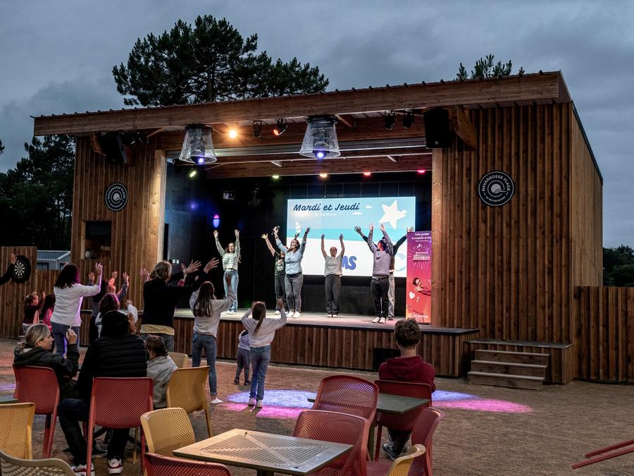 • Info supplémentaire animation : Animations toute la saison (réduite en basse saison), du dimanche au vendredi, en journée et en soirée > Réveil musculaire > Olympiades, pétanque, initiation danse... > Initiation au tir à l'arc > Soirées dansantes, Grands jeux, Karaoké, Loto, Café-théâtre... > Spectacles