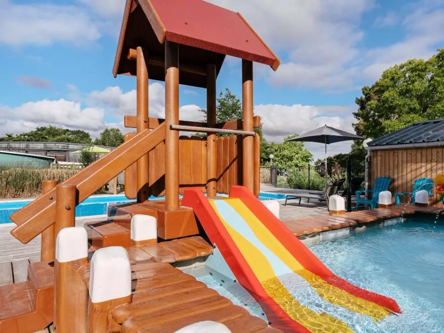 Infos supplémentaires sur l'espace aquatique : L'espace aquatique du camping comprend une piscine extérieur chauffée et recouvrable proposant une profondeur allant d'1,10m à 1.40m, une pataugeoire extérieur chauffée avec un espace ludique, un toboggan à virage et 2 penta-glisses.