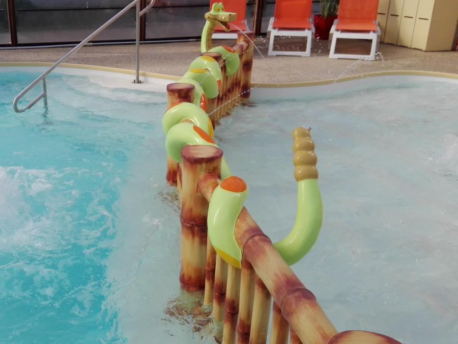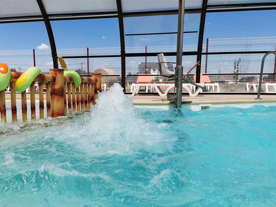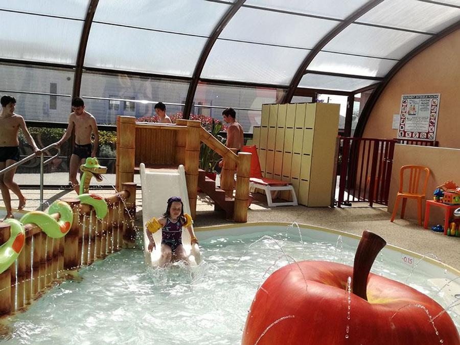 Infos supplémentaires sur l'espace aquatique : L'espace aquatique du parc est composé d'une piscine chauffée et couverte de 120 m². Banc balnéo, jets d'eau et geyser, un petite toboggan dans le bassin enfant et un solarium. Un système de mise à l'eau pour les personnes à mobilité réduite. Le port du maillot de bain est obligatoire pour des raisons d'hygiène.