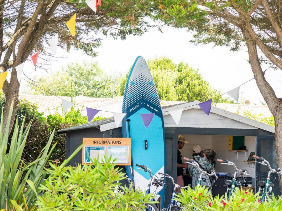 Implanté au coeur de l'Île de Ré, en Charente-Maritime, ce camping offre un accès privilégié à la plage pour des vacances les pieds dans l'eau. Son engagement environnemental, reconnu par un label écologique européen, se traduit par l'utilisation d'énergies renouvelables et des actions concrètes en faveur de la préservation de la nature et de la gestion des déchets.Les vacanciers profitent d'un large éventail d'activités ludiques et sportives, organisées tout au long de la journée et en soirée. Les enfants de 4 à 12 ans bénéficient d'un club dédié, tandis que les infrastructures telles que le terrain de beach-volley, les tables de ping-pong, l'aire de jeux et les espaces de pétanque ravissent petits et grands.Vous trouverez sur place un snack pour vos pauses gourmandes et un service de dépôt de pain. Le camping propose également le prêt de matériel comme planches et fers à repasser, ainsi qu'un accès Wifi disponible sur l'ensemble du domaine (service payant).