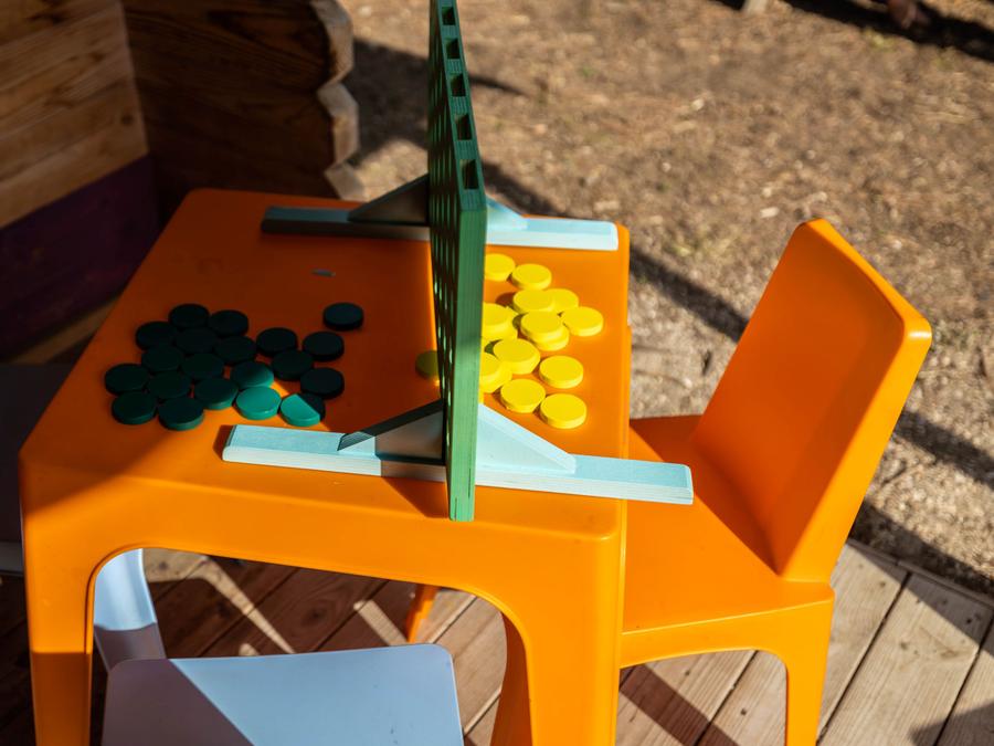 • Terrasse semi couverte attenante au mobil-home, accès par des marches. Table avec 4 chaises et plancha.