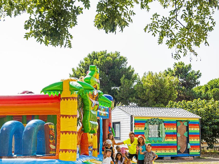 Infos supplémentaires animations : Durant la haute saison, l'équipe animation assure le show au sein du domaine et vous propose des activités matin, midi, après-midi et soir. De jeunes et dynamiques animateurs vous feront vibrer au rythme de la danse du village et de la chanson de l'été.