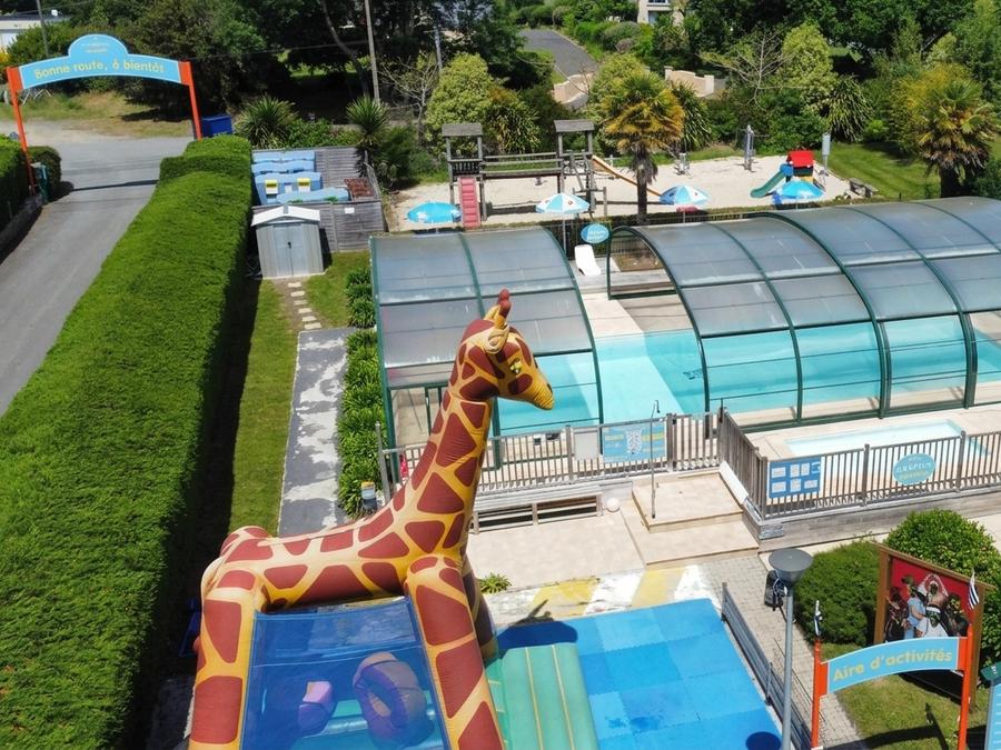 Infos supplémentaires sur l'espace aquatique : D'avril à septembre, le camping met à votre disposition un espace aquatique sécurisé équipé d'une piscine couverte chauffée à 28° découvrable par beau temps. Les enfants profiteront d'une pataugeoire (juillet/août) ainsi qu'un toboggan indépendant de l'espace aquatique avec 27 mètres de piste et une arrivée en aquafrein. Afin d'apprécier chaque moment, une plage pourvue de parasols et bains de soleil sont mise à votre disposition.