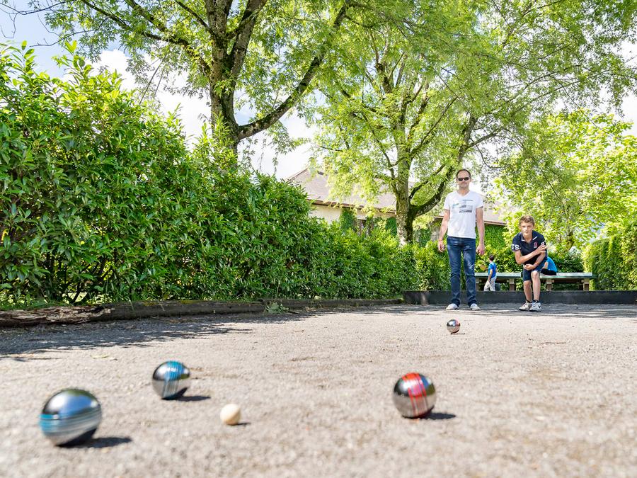Infos supplémentaires sur l'espace aquatique : Détente, natation ou jeux, dans la piscine spacieuse de 200 m², il y en a pour tous les goûts. Le solarium est parfait pour les amateurs de farniente, avec sa belle terrasse, ses bains de soleil et sa vue imprenable sur les paysages environnants. Travailler vos longueurs tranquillement dans la piscine, tandis que vos enfants s'amusent dans des zones spécialement aménagées pour eux. Les plus petits peuvent barboter dans une pataugeoire de 30 m² et d'une profondeur maximum de 50 cm. L'occasion de découvrir les joies de l'eau en toute sécurité et partager des moments de bonheur et de rires en famille. Un bracelet d'identification est obligatoire pour accéder à l'espace aquatique.