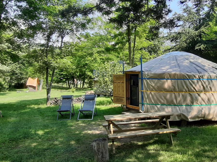 Aménagée dans une ambiance cocooning d'un lit double, de 2x2 lits superposés, de mobilier mongole, tapis et table basse. Vous pouvez profiter d'un espace cuisine aménagé avec tout le nécessaire... sans oublier à l'extérieur les transats et la table forestière pour le farniente !
