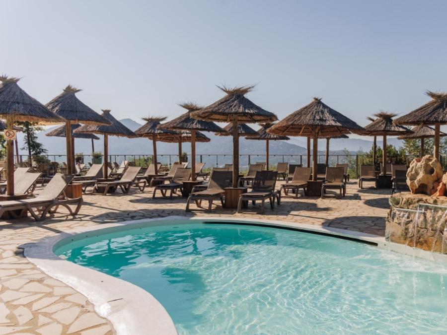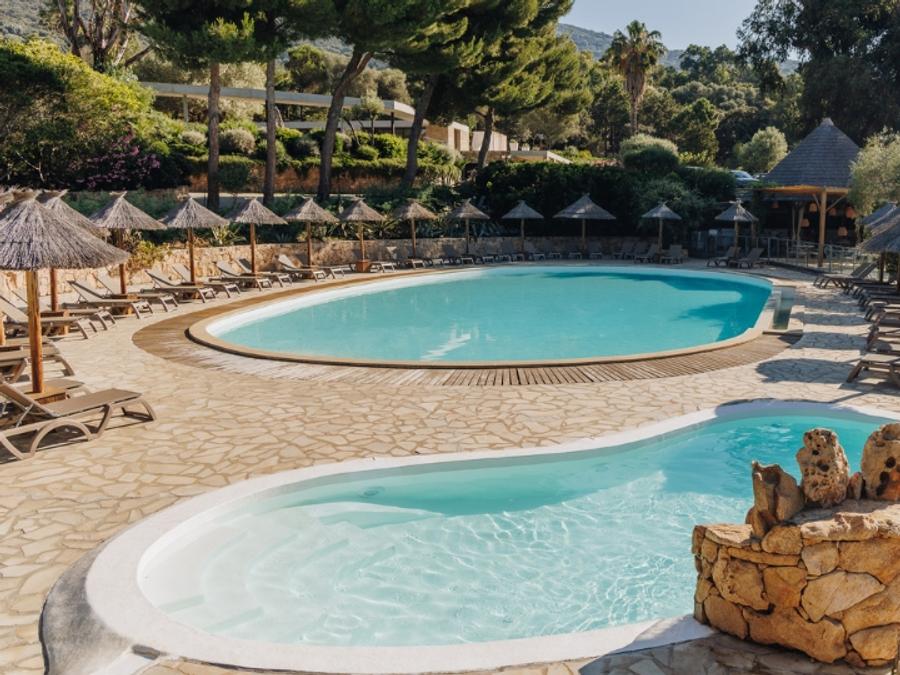 Infos supplémentaires sur l'espace aquatique : Découvrez nos 2 piscines, accessibles à tous pendant votre séjour, avec de nouveaux transats confortables et une vue panoramique sur la baie de Valinco et Propriano. Une grande piscine de 25 mètres et une piscine pour enfants, chauffées hors saison, avec une cascade en pierre. Attenant à la paillote, l'endroit idéal pour déguster un soda, un délicieux cocktail ou une glace tout en admirant la vue panoramique.