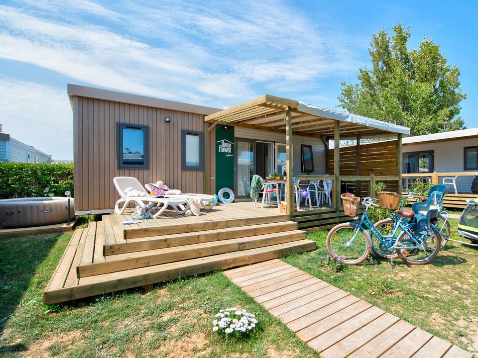 Infos supplémentaires santé et bien être : - Le camping dispose d'un bain à remous, accessible gratuitement, à proximité de la piscine. Les clients désirant s'offrir une séance privative d'une heure doivent réserver à la réception. - Pour les séjours en mobil home Premium, il est également possible de louer un jacuzzi 4/6 places directement sur les terrasses des hébergements. Tarification à partir de 150 euros / semaine.