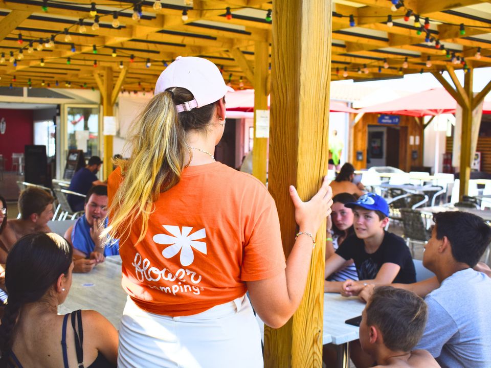 Infos supplémentaires animations : Durant la période estivale, le "Mister Flower Club" accueille les enfants de 4 à 12 ans, du lundi au vendredi, de 10 h à 12 h et de 15 h à 17 h. Des moments ludiques, récréatifs et pédagogiques sont au programme. Les enfants pourront s'attendre à des activités manuelles, à des séances de maquillage, à des balades pédagogiques à la plage, à des ateliers circassiens, à des minidiscos ou à des kermesses. - Mascottes : Dino et Mister Flower - Une réservation un jour en avance (à la réception) est fortement conseillée. Pour toute la famille, diverses animations comme des compétitions sportives, des jeux apéro ou le pot d'accueil (chaque dimanche à 18 h 30) sont organisées par l'équipe d'animation du camping. Pour couronner le tout, des karaokés, des soirées dansantes, des concerts (latino ou variété/pop-rock), des lotos musicaux sont également au programme, sur la nouvelle scène du restaurant du camping. Les clients pourront aussi apprécier des animations musicales qui se tiennent au restaurant chaque jour, à partir de 20 h 30 / 21 h jusqu'à 23 h.