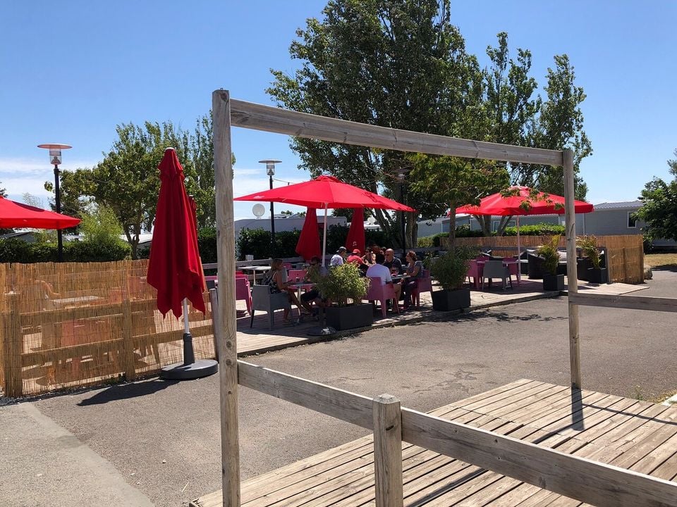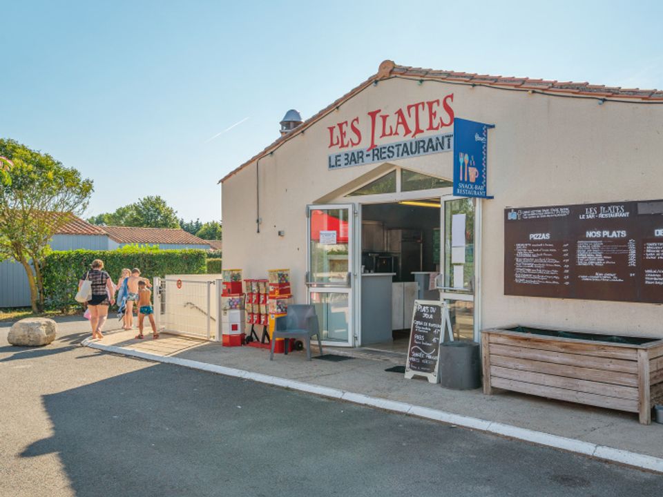Infos supplémentaires commerces et restaurants : Le Flower Camping Les Ilates dispose d'un service de restauration comprenant un restaurant et un bar. Le restaurant - Horaires d'ouverture : 9 h à 14 h et de 17 h à 22 h (basse saison) / 8 h 30 à 23 h (haute saison) - Menu : burgers, pizzas, salades composées, plats de viande ou de poisson, plateaux de fruits de mer (à la demande), dessert chocolaté ou glacé, etc. Le Bar Ouvert tout au long de la journée, les clients pourront y siroter un verre rafraîchissant dans une ambiance conviviale et détendue. Hormis la carte bar sur laquelle les clients peuvent trouver le menu, des planches apéro et des tapas y sont également servis. L'heure de l'apéro est fixé chaque jour, à 18 h. Le service de dépôt de pain Les clients trouveront des viennoiseries et du pain à la réception durant toute la saison. De la mi-juin à la mi-septembre, ces produits sont disponibles à l'épicerie du camping.