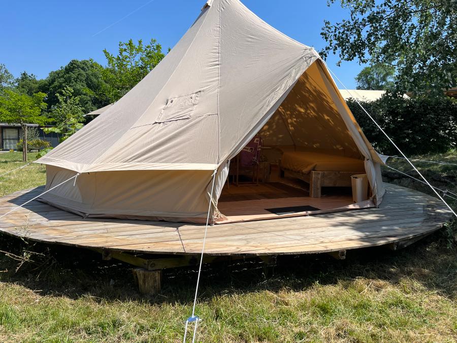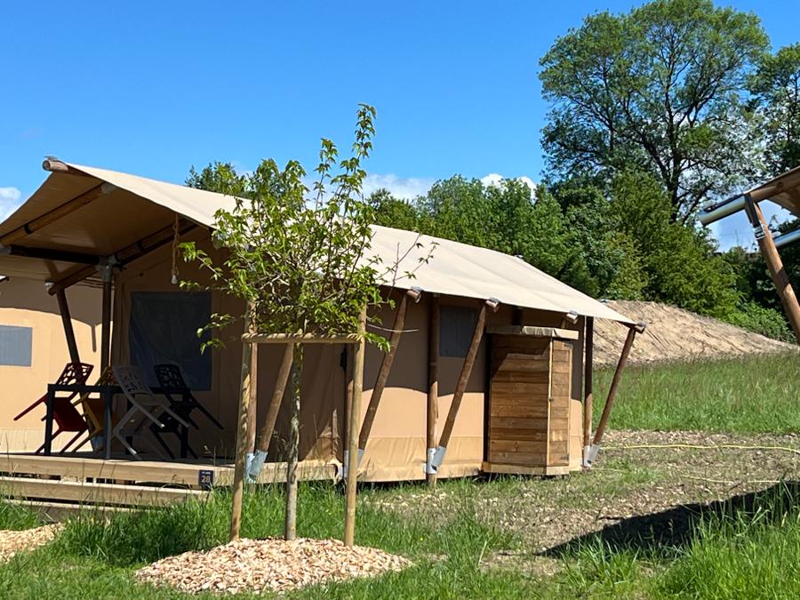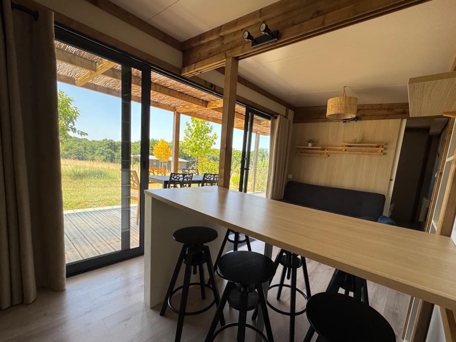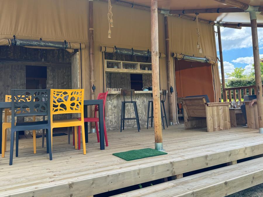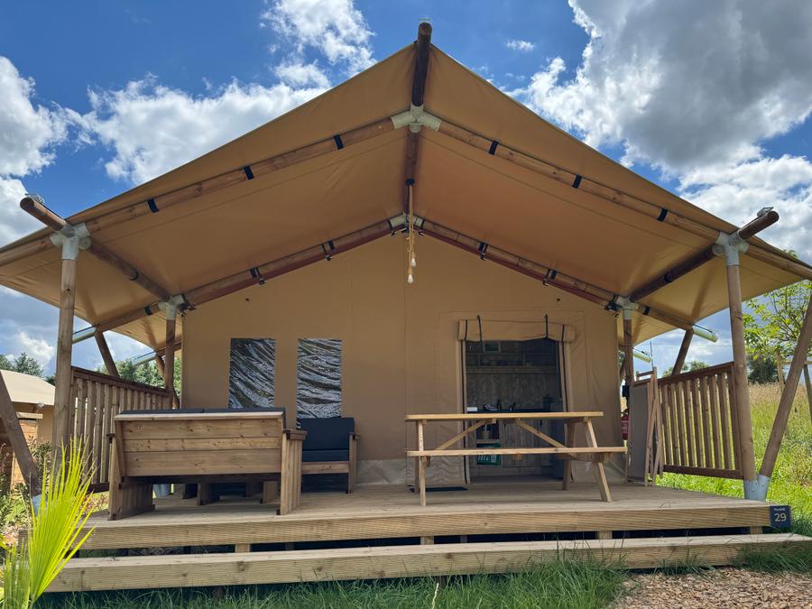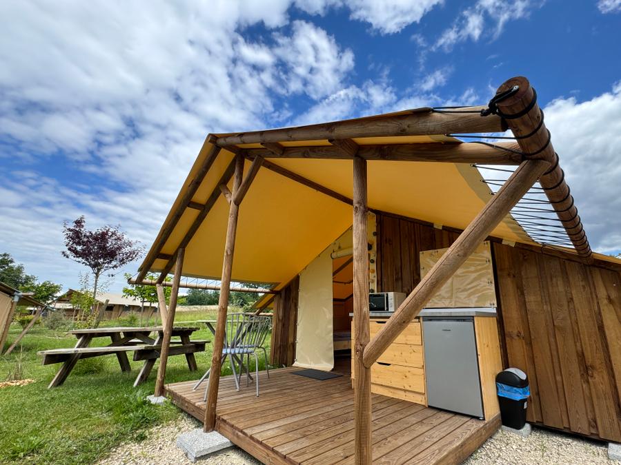 Découvrez notre tente lodge familiale, un véritable havre de paix de 34m². Idéale pour des vacances en famille ou entre amis, elle vous offre un espace de vie spacieux et convivial. La cuisine équipée, ouverte sur la terrasse, vous permettra de préparer de délicieux repas en toute simplicité. Après une journée de balade, détendez-vous dans le salon ou sur la terrasse, bercé par le chant des oiseaux.