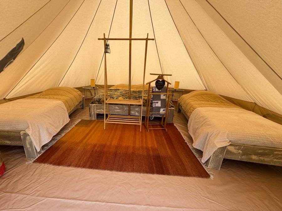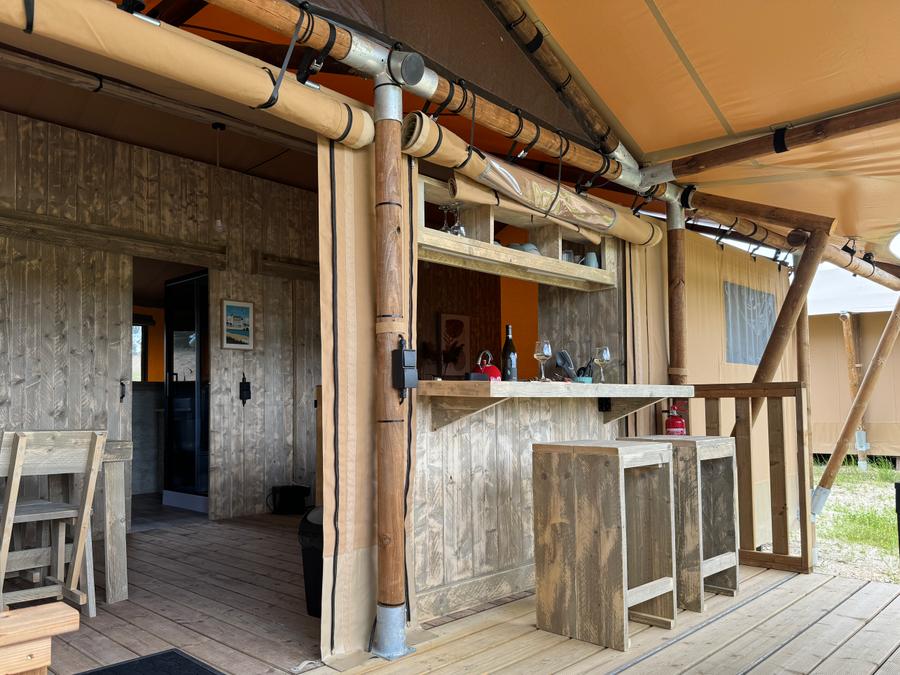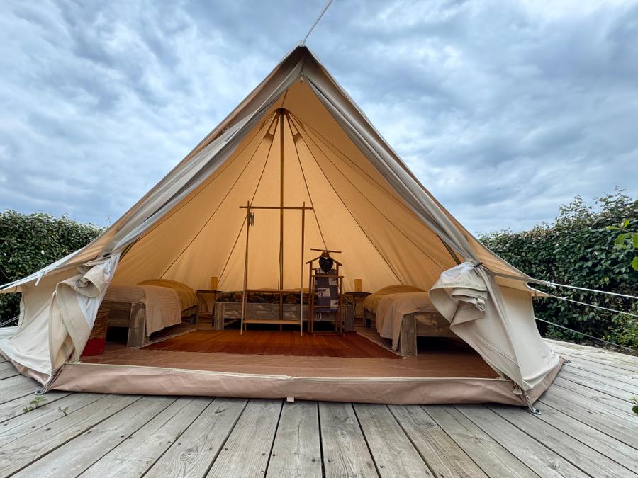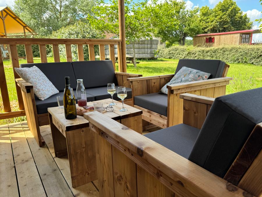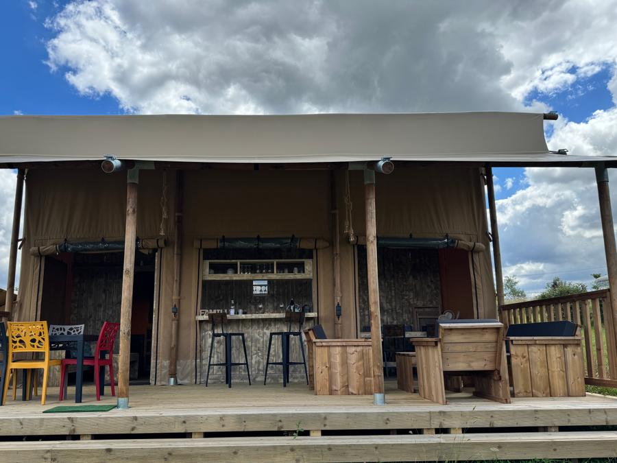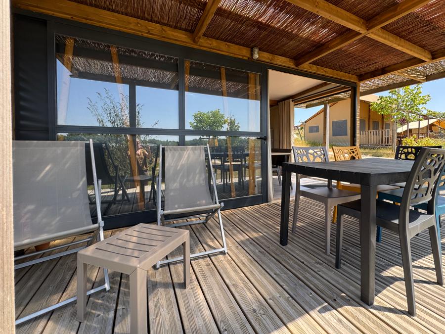 Découvrez notre tente lodge familiale, un véritable havre de paix de 34m². Idéale pour des vacances en famille ou entre amis, elle vous offre un espace de vie spacieux et convivial. La cuisine équipée, ouverte sur la terrasse, vous permettra de préparer de délicieux repas en toute simplicité. Après une journée de balade, détendez-vous dans le salon ou sur la terrasse, bercé par le chant des oiseaux.