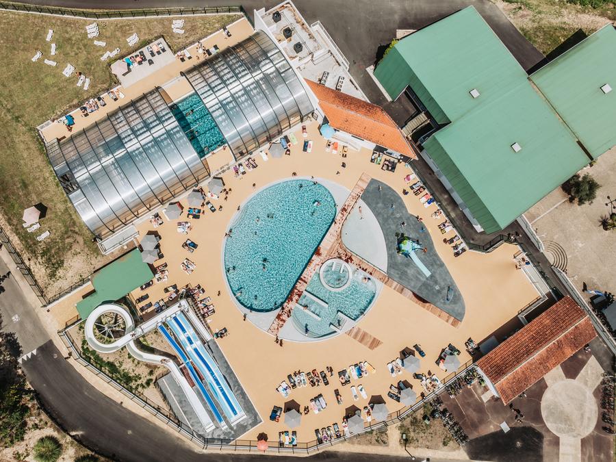Infos supplémentaires sur l'espace aquatique : Zone d'eau chauffée composée de : - 3 piscines extérieures avec toboggans ; - Une piscine pour enfants ; - Une piscine de 25 mètres pour les nageurs ; - Une piscine intérieure chauffée.