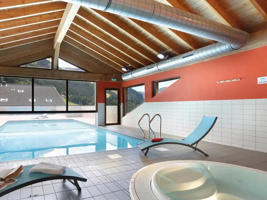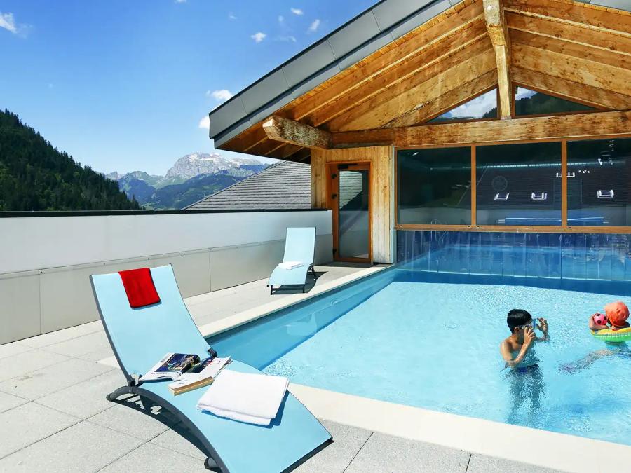 À l'entrée de la station de Châtel, à 1 200 mètres d'altitude, cette résidence haut de gamme est entourée de verdure, aux portes du Géoparc mondial UNESCO du Chablais. Profitez d'un espace aquatique moderne avec une piscine intérieure chauffée reliée à un bassin extérieur, offrant la possibilité de nager en plein air tout en admirant les montagnes environnantes.Côté bien-être, l'établissement propose un sauna, un bain à remous (en supplément) et une salle de fitness. Bien qu'il n'y ait pas de clubs enfants ni d'animations sur place, la situation idéale permet de profiter des infrastructures de la station : le Bike Park de Châtel, le Fantasticable pour survoler la vallée ou encore le Lac de Vonnes et ses aires de jeux, sentiers et espaces de pêche.L'architecture authentique en bois et pierre abrite des appartements spacieux, chacun doté d'une kitchenette moderne et d'un balcon ou d'une terrasse privative. Les services incluent le Wi-Fi (en supplément), un parking couvert (en supplément) et la location de linge. De plus, le Multi Pass Portes du Soleil permet d'accéder à de nombreuses activités de la vallée à tarif préférentiel.