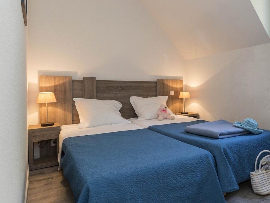 • Infos supplémentaires services : A votre disposition Piscine couverte chauffée (baies vitrées coulissantes à mi-hauteur) Sauna (avec participation) Terrain de pétanque Aire de jeux pour enfants Terrain multisports Table de ping-pong Laverie (avec participation) Parking extérieur (sur réservation) Accès WIFI dans les appartements (1 appareil) Les hébergements Organisé en îlots, les hébergements de la résidence se composent d'appartements du 2 pièces 4 personnes au 4 picèes 8 personnes. Confortablement équipés, les logements sont aménagés d'une cuisine (plaque vitrocéramique, micro-ondes/gril, lave-vaisselle), salle de bains ou de douche avec WC. Télévision et accès wifi gratuits. La plupart des appartements sont prolongés d'une terrasse. 2 x 2 pièces, 3 x 3 pièces et 2 x 4 pièces sont aménagés pour les personnes à mobilité réduite