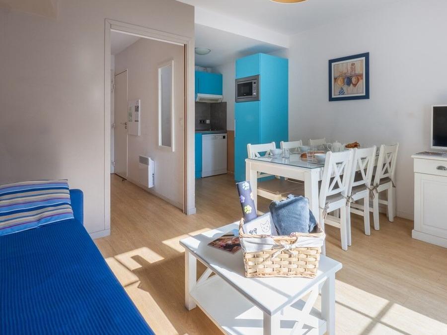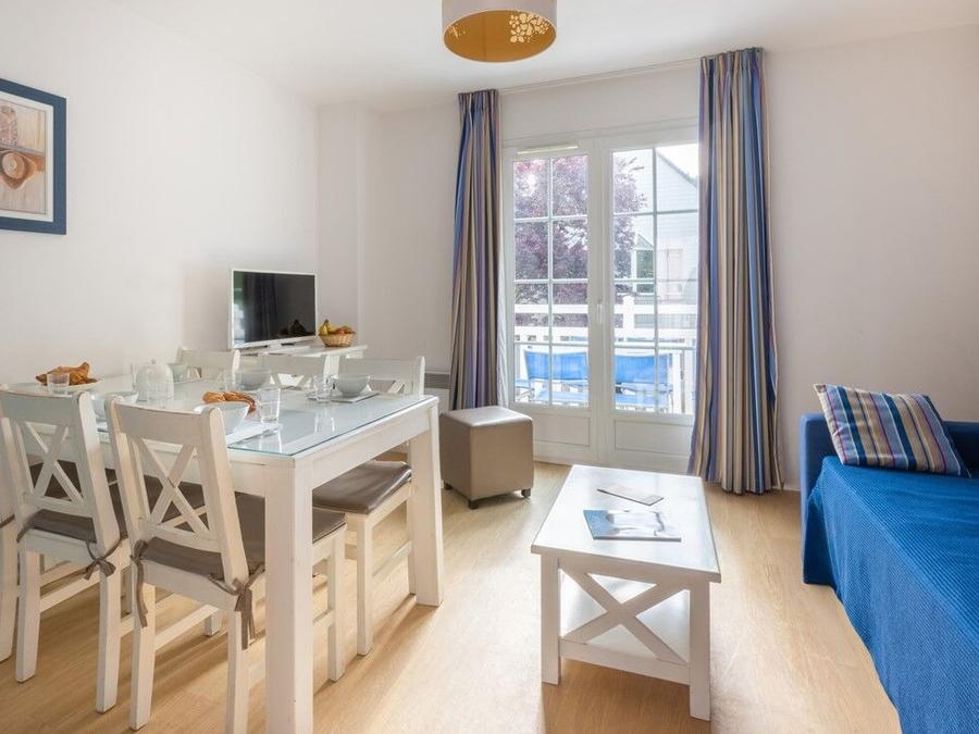 Le Domaine des Dunettes vous accueille dans un cadre typique de la Normandie, à Cabourg, à proximité immédiate du centre-ville et à quelques minutes à pied de la plage. L'architecture authentique de la résidence plonge les visiteurs dans l'ambiance raffinée de la côte Fleurie, tout en offrant un accès rapide aux commerces et aux sites emblématiques de la région, tels que le Grand Hôtel de Cabourg, les plages du Débarquement, les falaises des Vaches Noires ou encore le village de Beuvron-en-Auge.Pour les loisirs, une aire de jeux est disponible pour les enfants. Bien qu'il n'y ait pas de clubs ou d'animations organisés sur place, de nombreuses activités sportives et nautiques sont proposées à proximité, comme la voile, le char à voile, le kite-surf, le golf, le tennis, le mini-golf ou encore des balades à cheval. La diversité des équipements environnants permet à chacun de profiter pleinement de son séjour selon ses envies.La résidence propose des appartements entièrement équipés avec kitchenette, télévision et tout le nécessaire pour un séjour confortable. Sont inclus le linge de lit et de toilette, les lits faits à l'arrivée ainsi que le ménage de fin de séjour (hors cuisine). Un parking extérieur gratuit, le Wifi dans les logements et une laverie (en supplément) sont également à disposition. Des hébergements adaptés aux personnes à mobilité réduite et la location de kits bébé sont possibles sur réservation.