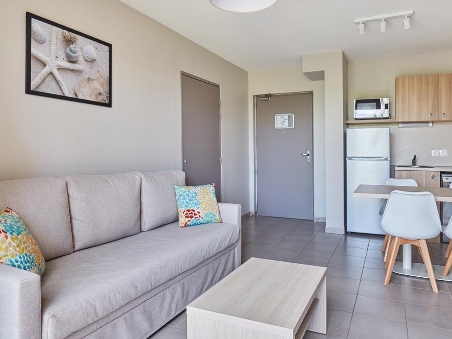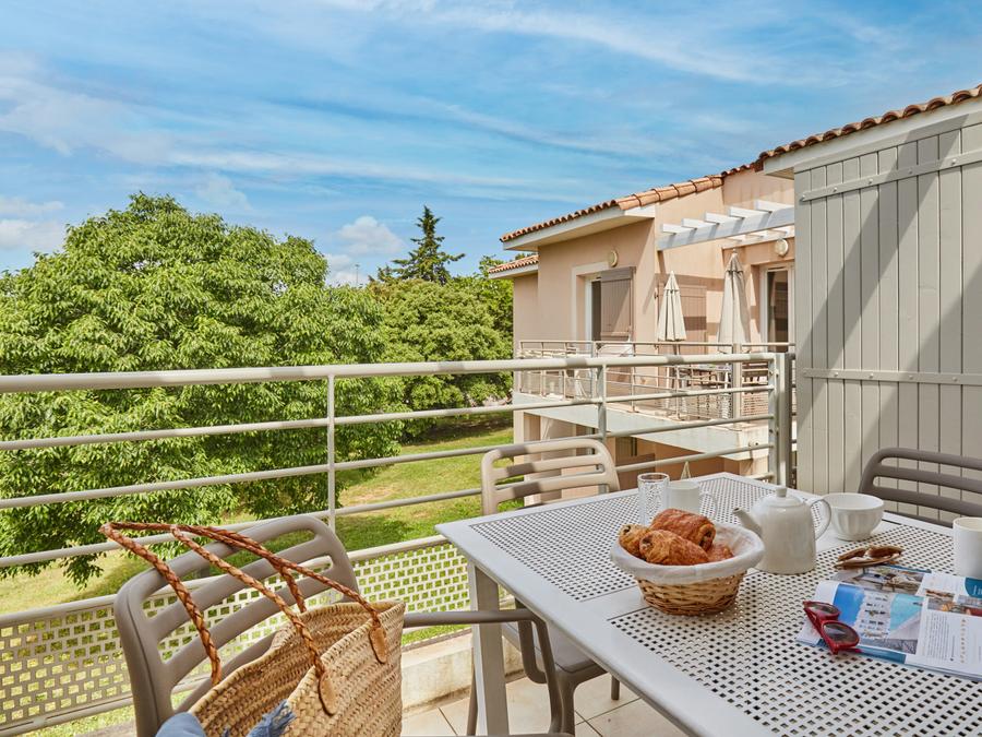 À La Londe-les-Maures, la Résidence Odalys Référence Les Océanides bénéficie d'une situation idéale face aux Îles d'Or et à seulement 400 mètres de la plage de l'Argentière. Proche du port Miramar et adossée au Massif des Maures, elle offre un accès privilégié aux trésors de la Provence, à la Route des Vins et aux villages typiques de la région.La résidence dispose d'une piscine extérieure ouverte de mi-avril à fin septembre (sous réserve), ainsi que d'un espace fitness gratuit. À proximité, de nombreuses activités sont proposées : sports nautiques, golf, équitation et randonnées à pied ou à vélo. En juillet et août, des animations familiales rythment les journées et soirées, avec clubs enfants (4-11 ans) et ados (12-15 ans) disponibles durant les vacances scolaires.Les 225 appartements climatisés, du studio au trois pièces, sont équipés de terrasse ou balcon. Sur place, un restaurant et un bar avec terrasse invitent à savourer la cuisine locale. Un parking extérieur gratuit est prévu (1 place par logement). Des services optionnels comme sauna, hammam, laverie, location de kit bébé et petit-déjeuner buffet sont proposés. Les animaux sont acceptés avec supplément et sur réservation.