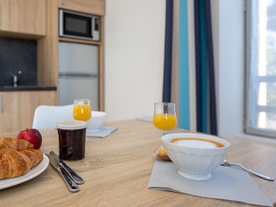 Kitchenette équipée (plaque vitrocéramique ou à induction, micro-ondes, lave-vaisselle)
