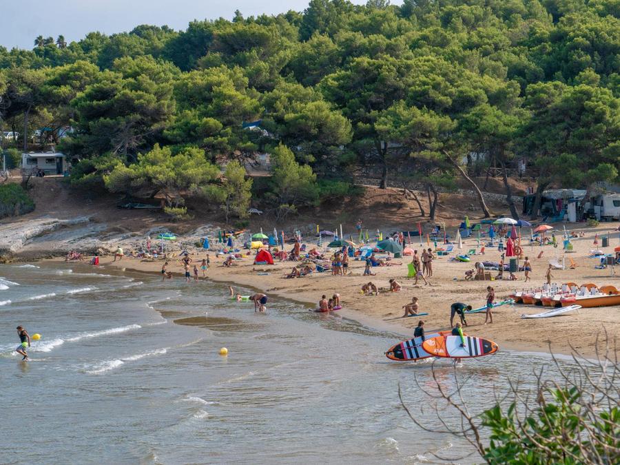 Au coeur d'une majestueuse pinède du Gargano, ce camping-village propose un accès direct à une plage privée, à seulement 2 kilomètres du centre de Vieste. Les vacanciers peuvent choisir entre appartements, bungalows, mobil-homes ou emplacements, tous à proximité immédiate de la mer, pour un séjour alliant nature et confort.Les familles bénéficient d'un programme d'animation dédié aux enfants, avec des ateliers créatifs et jeux variés, permettant aux plus jeunes de s'amuser en toute sécurité au sein de la pinède pendant que les parents se détendent. Le site propose également une école de planche à voile accessible à tous les niveaux.La situation privilégiée permet de rejoindre facilement Vieste et sa vieille ville pittoresque. Les environs offrent de nombreux sentiers de randonnée et pistes cyclables, parfaits pour explorer le parc national du Gargano et profiter d'un séjour dynamique entre mer et nature.