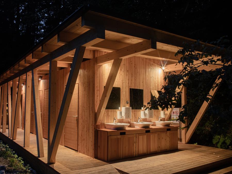 Au Forest Camping Mozirje, les vacanciers profitent d'un accès privilégié à la rivière Savinja, idéale pour se baigner dans une eau claire et naturelle. Ici, pas de piscine artificielle : l'expérience se vit au plus près de la nature, pour des moments de détente authentiques au bord de l'eau, dans un environnement préservé.Le camping propose de nombreux équipements pour les amateurs de sports : terrains de basket-ball, de football et de beach-volley sont à disposition. Les plus jeunes peuvent s'amuser sur l'aire de jeux en bois ou s'essayer à l'escalade. Plutôt que des animations classiques, l'établissement privilégie les activités de plein air, avec des sorties en rafting, des randonnées guidées et des initiations au parapente. Un espace commun en plein air et un coin feu de camp invitent à partager des soirées conviviales.Implanté dans la vallée de la Savinja, à proximité immédiate du village de Mozirje et du parc floral Mozirski Gaj, le camping séduit par son engagement écoresponsable. Les campeurs bénéficient de sanitaires modernes, du Wi-Fi gratuit dans les espaces communs, d'une location de vélos et d'un petit magasin de produits locaux. Des hébergements insolites comme des cabanes en bois ou des tentes de glamping complètent l'offre traditionnelle.