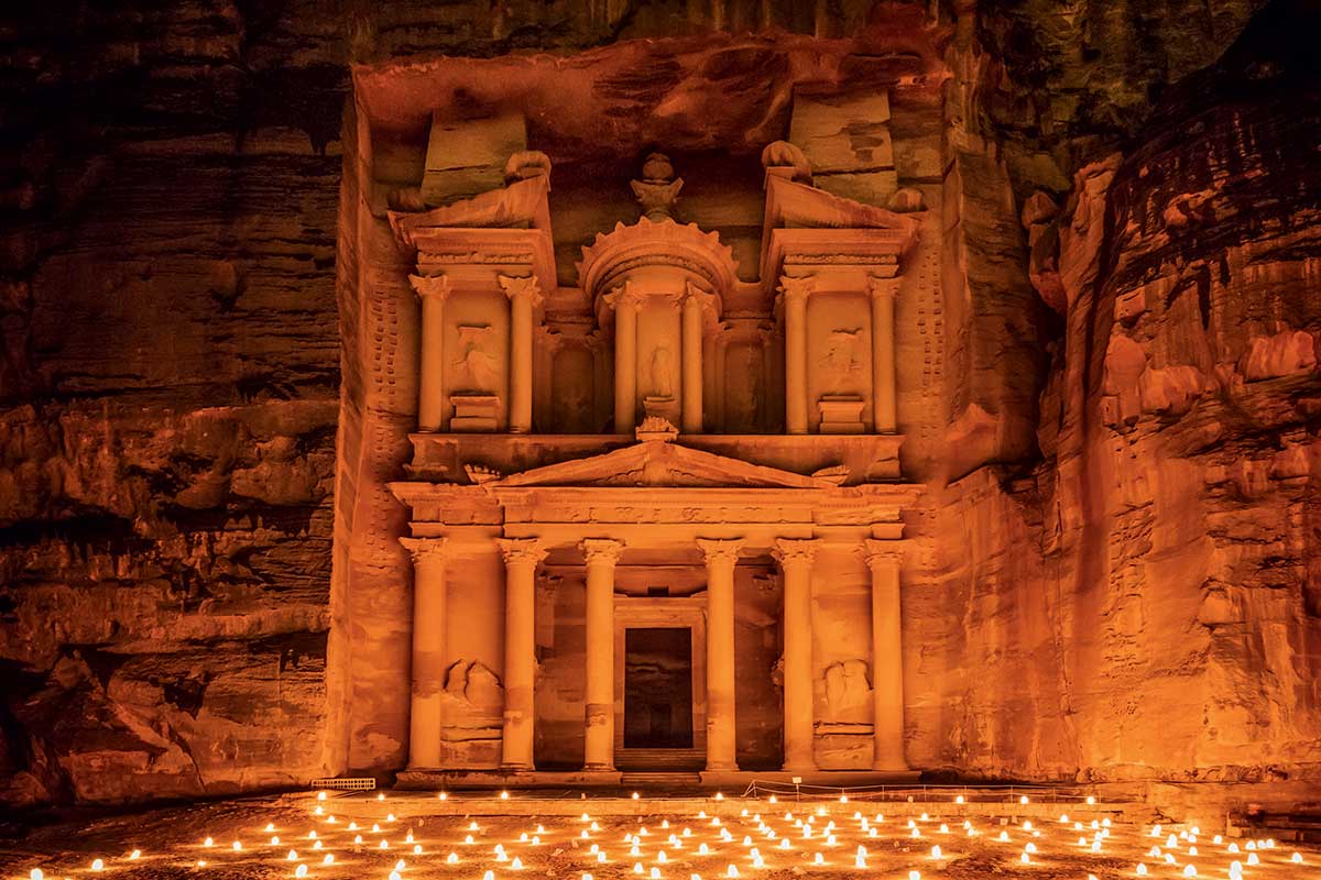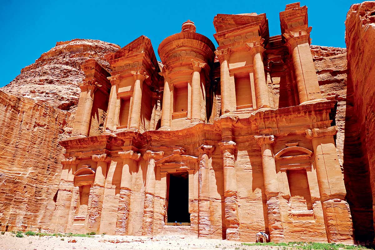 Petit déjeuner. Journée consacrée à la visite du site de Pétra : la ville rose et capitale des Nabatéens. La géologie est à l'origine de la ville rose, taillée de grès tendre. L'homme, présent ici depuis de nombreux siècles, a achevé de donner son aspect au site. Au total, ce sont près de 800 monuments, notamment des tombeaux, qui s'éparpillent à Pétra sur 100 km². Fondateurs de l'une des plus belles civilisations d'origine arabe, les Nabatéens de Pétra seraient issus d'une tribu venue s'y nomadiser, vers le 7e siècle avant notre ère, avant de s'y installer. Leur utilisation du chameau comme moyen de transport ainsi que leur connaissance de l'irrigation en environnement désertique sont à l'origine de leur réussite, dont les prémices se sont fait sentir dès le 6e→siècle av. J.-C. Entrez au sein de Pétra par le Siq, étroite gorge géologique de 2 km de long pour atteindre le célèbre Khazneh, temple surnommé "le trésor". Continuez jusqu'à la rue des Façades, le dernier lieu de repos des rois et des familles locales situées en plein cœur de la ville. Vous arriverez ensuite à l'impressionnant théâtre de 8000 places, avant de suivre la rue de la Colonnade, artère principale et centre commercial de la ville, et de rejoindre l'extraordinaire monastère. Déjeuner pique-nique sur le site. Dîner et nuit à l'hôtel.