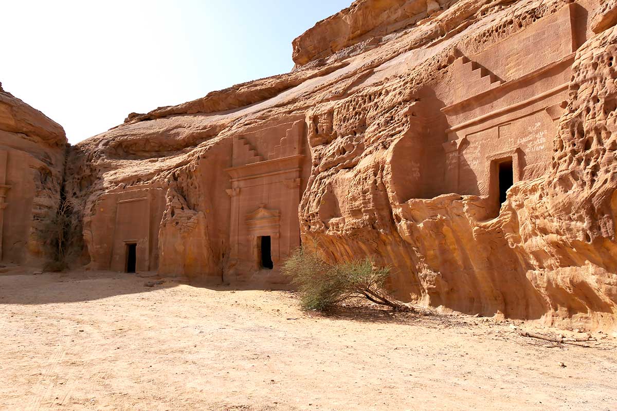Journée complète sur le site d'Hegra inscrit au patrimoine mondial de l'UNESCO en 2008 et cousin de Pétra en Jordanie. Il abrite 138 tombeaux ruspestres monumentaux aux façades décorées et son état de conservation est remarquable. Hegra a perdu de son importance sur les routes des Caravanes quand la route navale vers le Yémen fut établie par les Romains. Le site biblique de Dada, a été fouillé à seulement 4?%, mais la structure organisée de la ville y est clairement visible et les inscriptions trouvées documentent sur l'organisation politique et sociétale du royaume. Dîner et nuit à l'hôtel à Al-Ula.