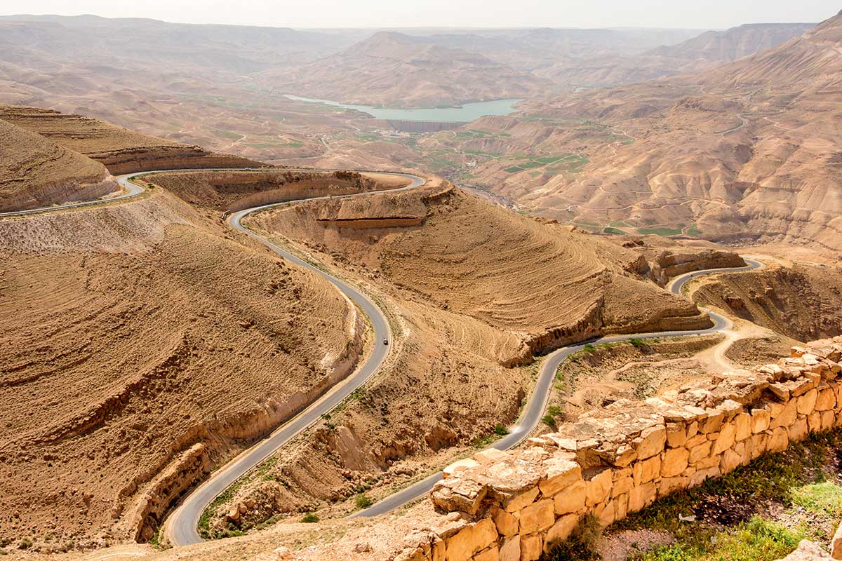 Route pour Madaba. Autrefois arrêt important le long de la route commerciale du Roi, Madaba ou "la ville des mosaïques" abrite la plus ancienne carte de la terre sainte, qui date du 6e siècle. Vous découvrirez aussi diverses œuvres d'art byzantines et omeyyades dans l'église grecque orthodoxe St George. Continuation jusqu'au mont Nébo, à environ 800 m d'altitude pour profiter de la vue panoramique sur la Terre promise. Déjeuner au bord de la mer Morte ; vous pourrez flotter sur son eau salée avant de rejoindre Amman. Tour de ville d'Amman avant le dîner dans un restaurant typique et nuit à l'hôtel Harir Palace 4*.