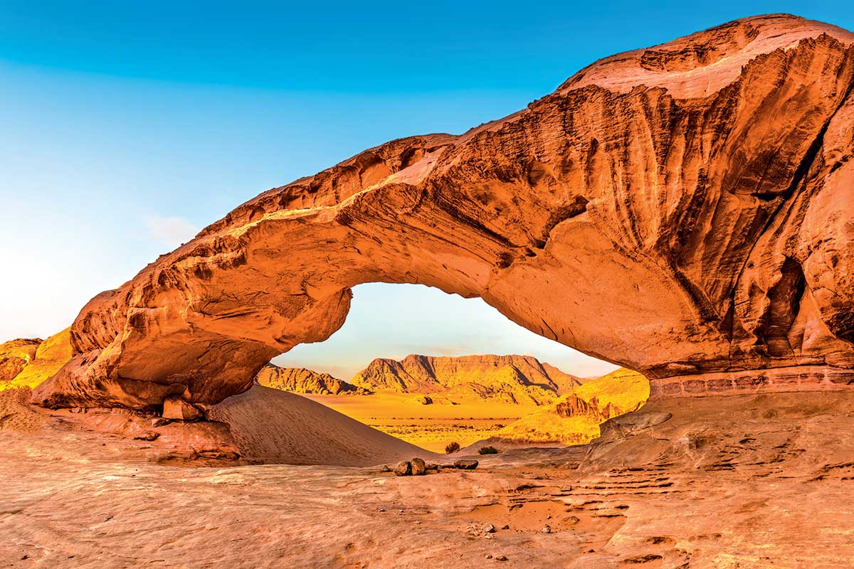 Départ vers la frontière jordanienne. Passage par la frontière et route pour le désert du Wadi Rum. Arrivée pour le déjeuner au campement. Le Wadi Rum est connu pour son cadre unique : de larges vallées sablonneuses variant du rouge au jaune, bordées de montagnes présentant une gamme de couleurs extraordinaires, du noir au jaune clair avec une prédominance de rouge. Dîner et nuit au Dream Camp.