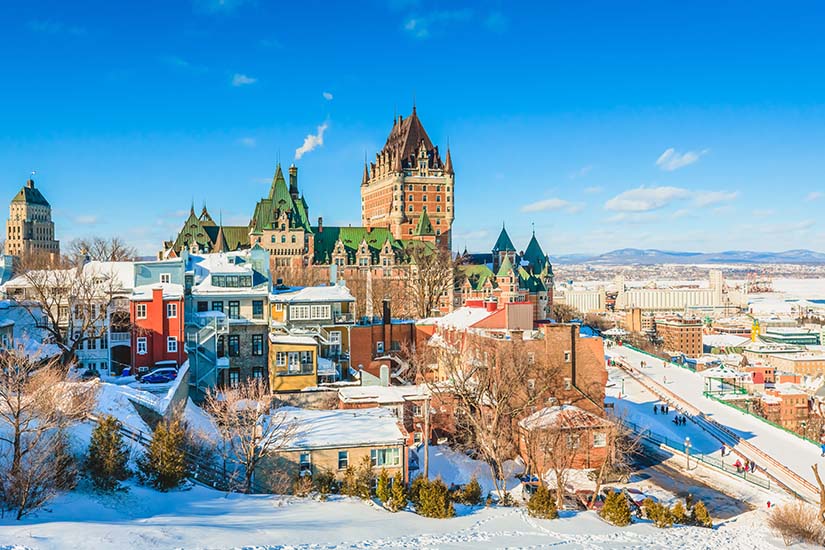 le matin, visite guidée de la ville de Québec, la capitale de la plus grande province francophone d'Amérique du Nord, au cachet typiquement européen : le parlement québécois, le Vieux-Québec, le château Frontenac (vues extérieures), le quartier du Petit-Champlain et la place Royal... Déjeuner. L'après-midi, route pour Montréal. Installation à l'hôtel au situé au centre de Montréal. Dîner libre logement.