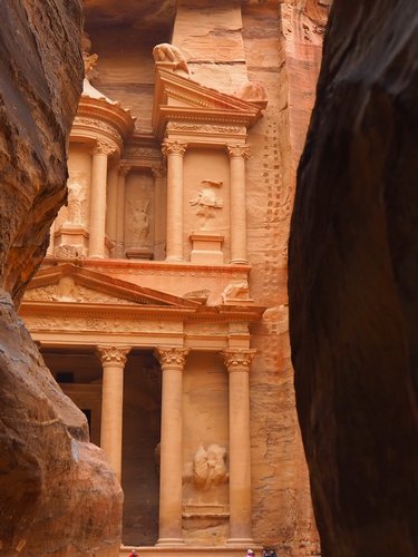 Après le petit déjeuner, départ pour une journée de visite entière de Petra. La ville rose "Pétra', « la pierre » en grec, découle du toponyme araméen «RQM » prononcer «Rekem» ou «Rakmou», qui signifie « bicolore ». La géologie est en effet à l'origine de la ville rose, entièrement taillée dans un grès tendre. Ce sont près de 800 monuments, surtout des tombeaux, qui parsèment Pétra sur 100 km2. Huitième merveille du monde et déclarée site de l'héritage mondial par l'UNESCO, c'est le site le plus célèbre de la Jordanie et même du Moyen Orient. Vous traverserez le Siq, étroite et longue faille due à un tremblement de terre préhistorique. Au bout du Siq, apparaît soudain, le monument le plus majestueux de Petra, «Al Khazneh» ou le «Trésor» au décor gréco-romain. Quel spectacle éblouissant de beauté… Au-delà du Trésor, il y a des centaines de bâtiments sculptés, des temples, des Tombeaux Royaux, des maisons, des chambres funéraires, des salles de fêtes, des bains, des escaliers monumentaux, des portes en forme d'arche, des rues pavées et surtout Le Théâtre Romain de 3000 sièges environ.