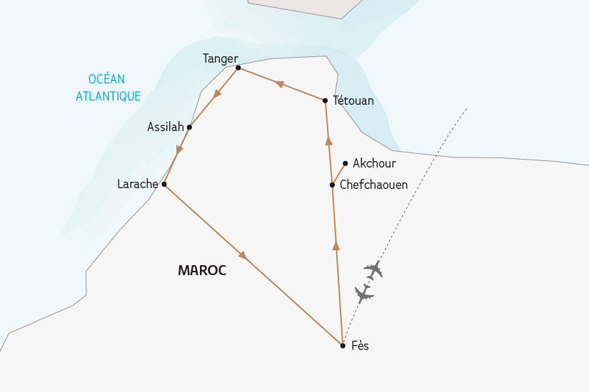 Au nord du Maroc, traditions et douceur méditerranéenne se rencontrent. Tanger cosmopolite, Tétouan andalouse, Chefchaouen bleutée, médinas authentiques, montagnes du Rif et art de vivre raffiné composent une découverte lumineuse et apaisante.