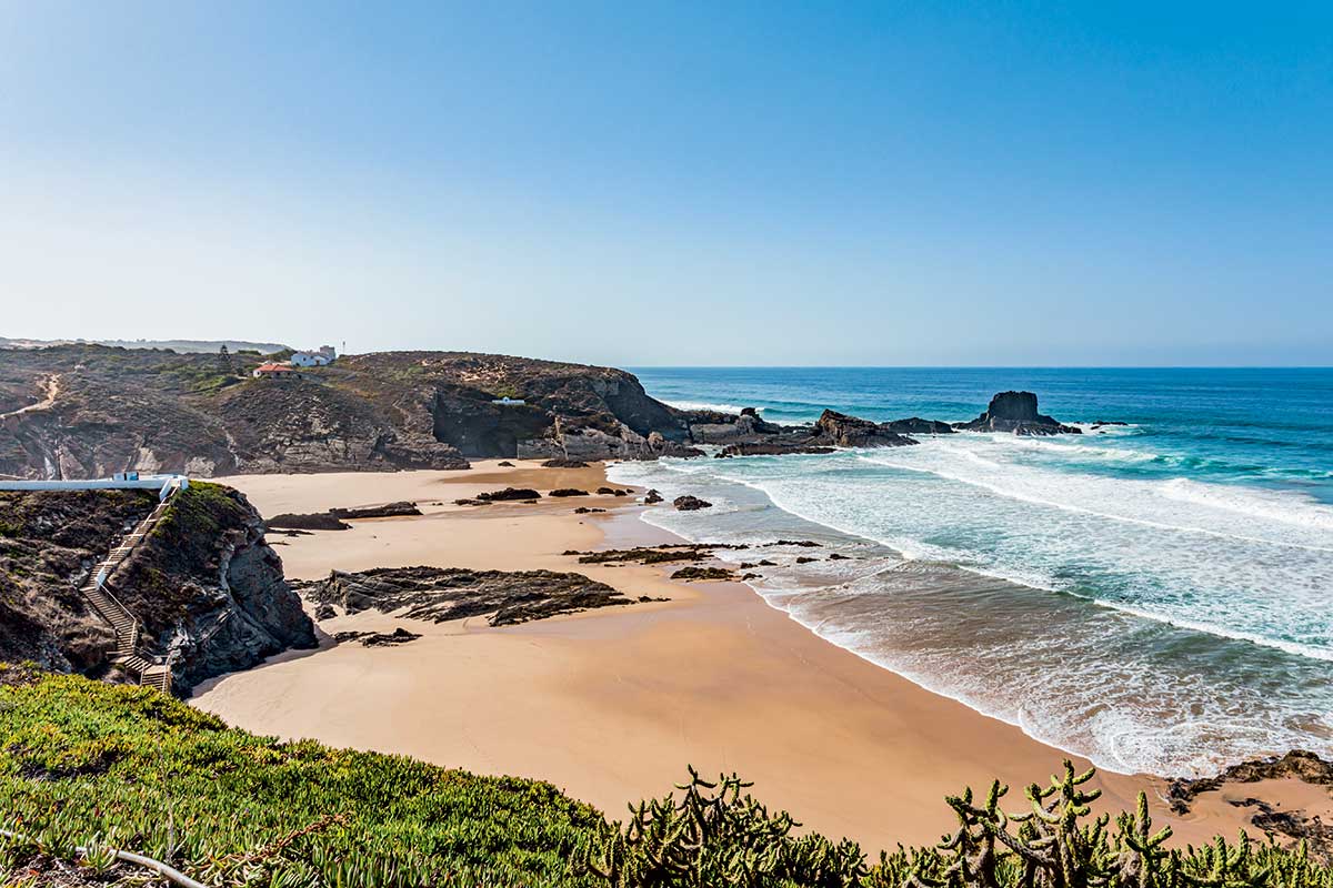 Départ pour la Costa Vicentina, une zone protégée allant de Vila Nova de Milfontes à Burgau, où se succèdent les plages avec de grandes étendues de sable à perte de vue, et d'immenses falaises de schiste ou de calcaire. Avec 80 km de côte sauvage et près de 75 000 hectares de zone protégées, ce littoral est l'un des mieux préservés du Portugal. Il offre de longs sentiers de randonnée balisés, l'occasion de découvrir cette côte vierge, ses falaises aux rochers escarpés, sa flore exceptionnelle mais aussi un grand nombre d'espèces animales. Vous aurez peut-être la chance d'observer le pigeon sauvage, le faucon pèlerin, des renards, des mangoustes d'Égypte, des loutres. Balade en passant par le sentier des pêcheurs (8 km Durée : 3 h 30) pour découvrir un véritable paradis ! Déjeuner. Dîner et nuit à l'hôtel.