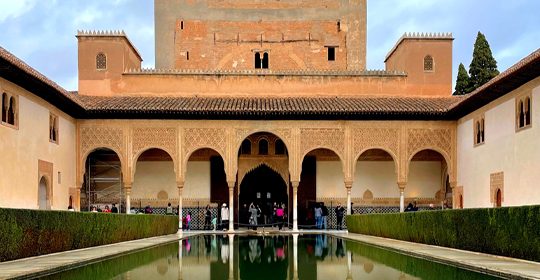Visite de Grenade, merveilleuse cité andalouse. Découverte de la plus belle vue sur l'Alhambra ainsi que sur la Sierra Nevada. Déjeuner dans un restaurant typique. Visite de l'Alhambra (2), classée au patrimoine de l'humanité. Ses fortifications renferment un palais d'architecture mauresque et celui de style Renaissance de Charles Quint. Les jardins du Generalife, véritable chef d'oeuvre paysager, conservent aujourd'hui encore tout le charme d'un lieu de villégiature mauresque avec patios, miradors et jets d'eau. Retour à l'hôtel, dîner et nuit.