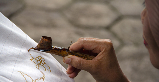 En cours de route, visite d'un atelier de Batik, découvrez les techniques ancestrales où l'on plonge les tissus dans des grandes cuves de teinture.