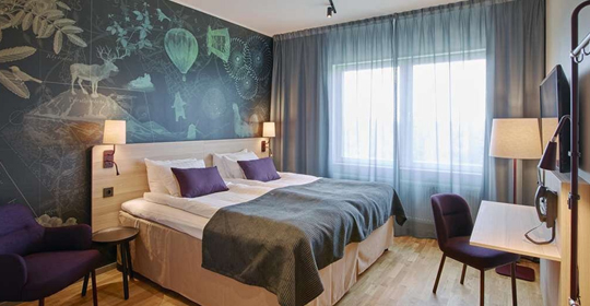 L'hôtel Scandic 4* est situé à 2,5 km du centre de Luleå et à 500 m de la mer et ses étendus de glace. Une navette gratuite sera à votre disposition pour vous rendre dans le centre-ville, tous les jours de 16h à 19h. Intégralement refait et agrandi en 2021, l'hôtel est aujourd'hui l'un des plus beaux établissements que compte la ville de Lulea. Très belle salle de restauration avec vue sur le lac, espaces conviviaux, piscine couverte chauffée, sauna et salle de fitness à votre disposition.