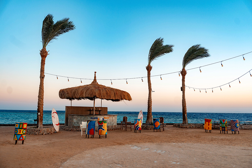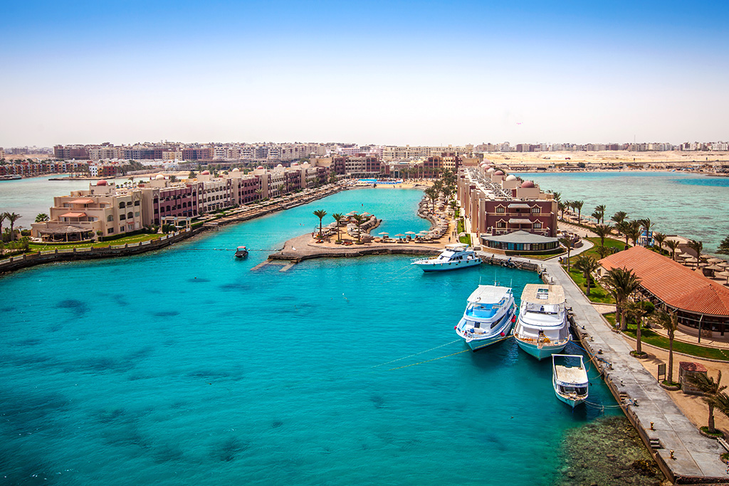 Cap sur la mer Rouge et Hurghada ! Mondialement connue pour sa mer azur aux eaux cristallines et ses montagnes désertiques, la station balnéaire d'Hurghada est la destination parfaite pour se ressourcer au soleil. Autrefois ancien village de pêcheurs, cette région offre aujourd'hui de véritables attraits, grâce à ses 40 km de côtes : à fleur d'eau, en « snorkeling » ou en plongée plus profonde, profitez des fonds marins de la mer Rouge qui comptent parmi les plus beaux du monde. C'est le lieu idéal pour des vacances animées grâce à son centre-ville, sa marina, ses nombreux bars, discothèques et restaurants dans le vieux quartier d'El Dahar mais également ses cafés traditionnels égyptiens et ses souks.