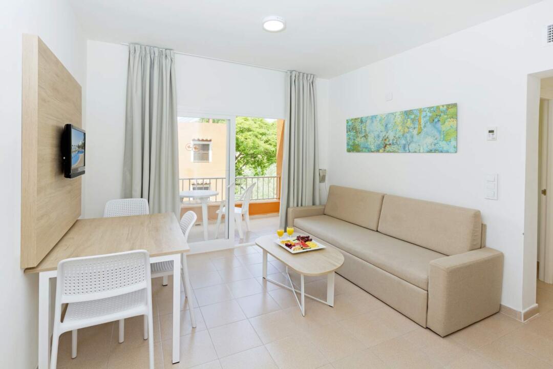 Installé au sein d'un vaste jardin méditerranéen, le complexe se compose de bungalows de deux étages formant un charmant petit village typiquement majorquin. Avec sa grande piscine en forme de lagon, ses espaces multisports et son ambiance chaleureuse, il est le cadre idéal pour des séjours en famille.