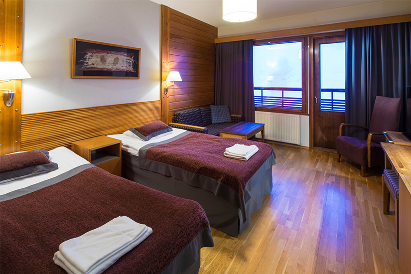 L'établissement dispose de différents types de chambres : le bâtiment principal où se trouvent les chambres standards et supérieures ; les « Saaga chalets » reliés au bâtiment principal, où se trouvent studios et appartements 1 chambre ; les « Nordic chalets » et « Ski chalets » situés à 300 m de l'hôtel où se trouvent appartements de 1, 2 ou 3 chambres (en nombre limité). Selon l'hébergement, vous y trouverez lits simples, sofa, TV, salle de douche, sèche-cheveux, armoire chauffante pour les vêtements. Les studios et appartements disposent d'un sauna privatif. Pour les autres, profitez d'un accès illimité au spa de l'hôtel.