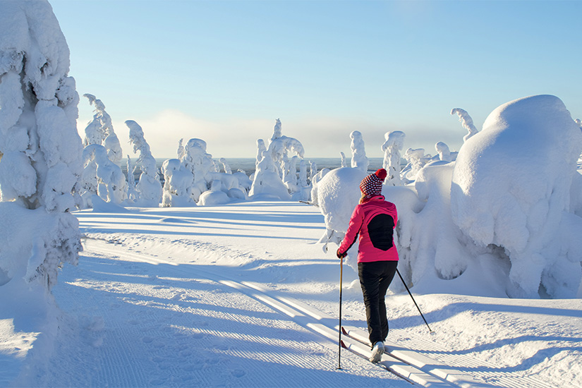 Faites une randonnée blanche ! Voici une excellente façon de découvrir les vastes espaces vierges de la nature finlandaise, de profiter de l'air pur et de faire un peu d'exercice. Mode de transport ancestral permettant de communier au plus près avec les paysages, vos raquettes vous permettront de glisser en souplesse sur la neige et profiter ainsi de l'incroyable paix que dégage la forêt au cœur de l'hiver.